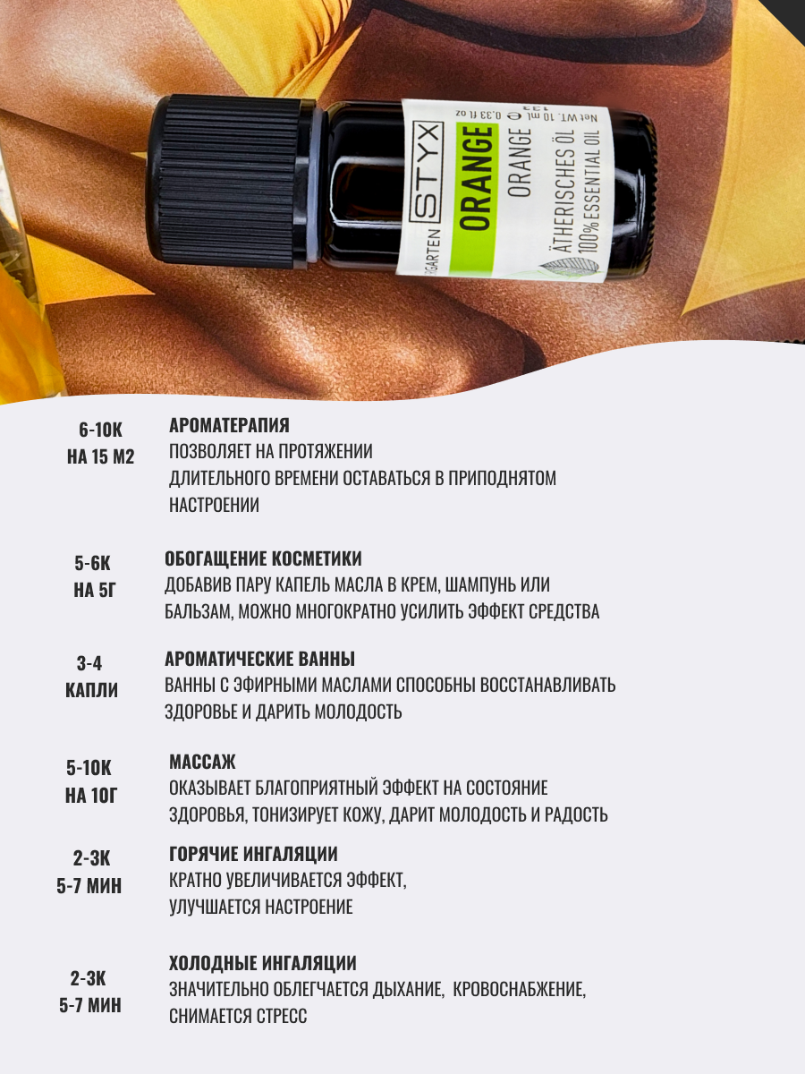 | Полное наименование | Стикс Эфирное масло апельсин 10мл |