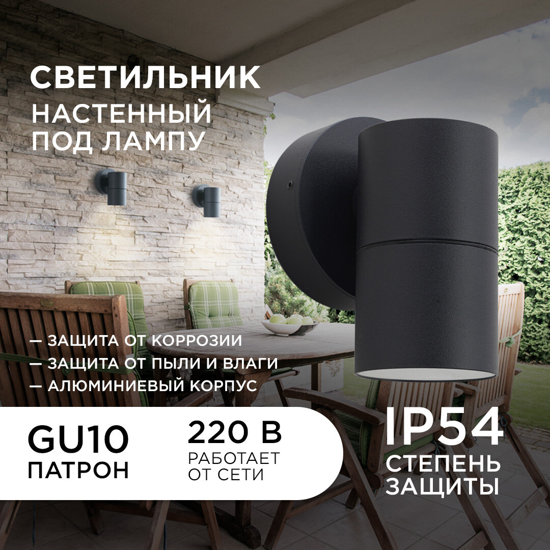 **Светильник настенный с круговым основанием Apeyron** выполнен в современном стиле. Предназначен для общего и декоративного освещения садовых дорожек, декоративных лужаек, скверов, загородных участков, фасадов зданий. Корпус светильника изготовлен из алюминия, а рассеиватель ― из закаленного стекла. Материалы светильника показывают отличную устойчивость к механическим повреждениям, воздействию температуры и солнечного света. Корпус выполнен в классическом цвете графит, который впишется в любую обстановку. Данное изделие имеет размер 90х58х118 мм и предназначено для монтажа на стену. Источником свечения выступает галогенная или светодиодная лампа с цоколем типа 1хGU10 и максимальной мощностью 35 Вт (приобретается отдельно). Светильник работает от сети 230 Вольт и не требует дополнительных устройств при подключении. В комплект входят 2 дюбеля и 2 винтовых самореза. Степень пылевлагозащиты изделия IP54.