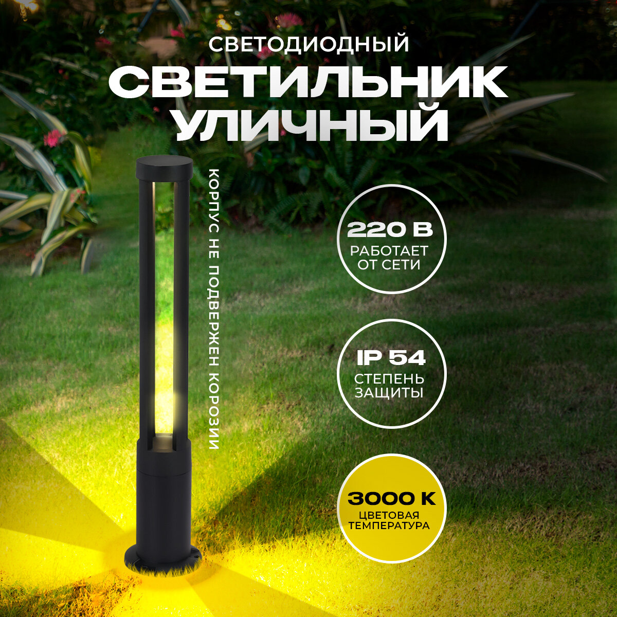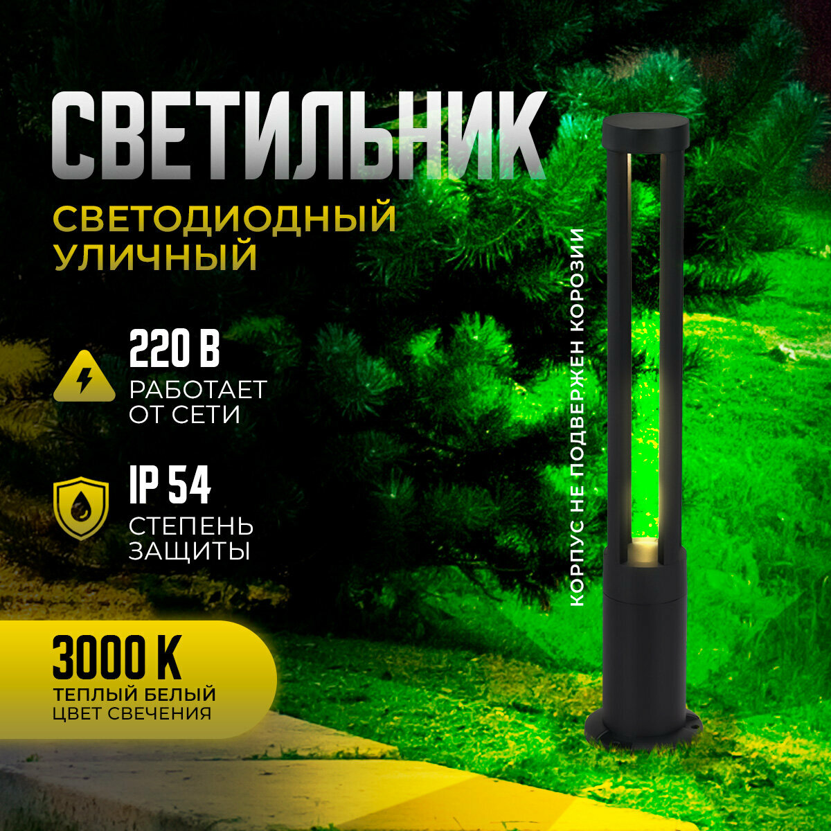 Столб уличный светодиодный Apeyron 80 см теплый белый свет 700 лм цвет черный