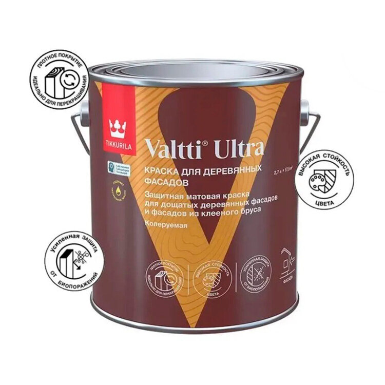 Краска для деревянных фасадов Tikkurila Valtti Ultra База A белая матовая 2.7 л