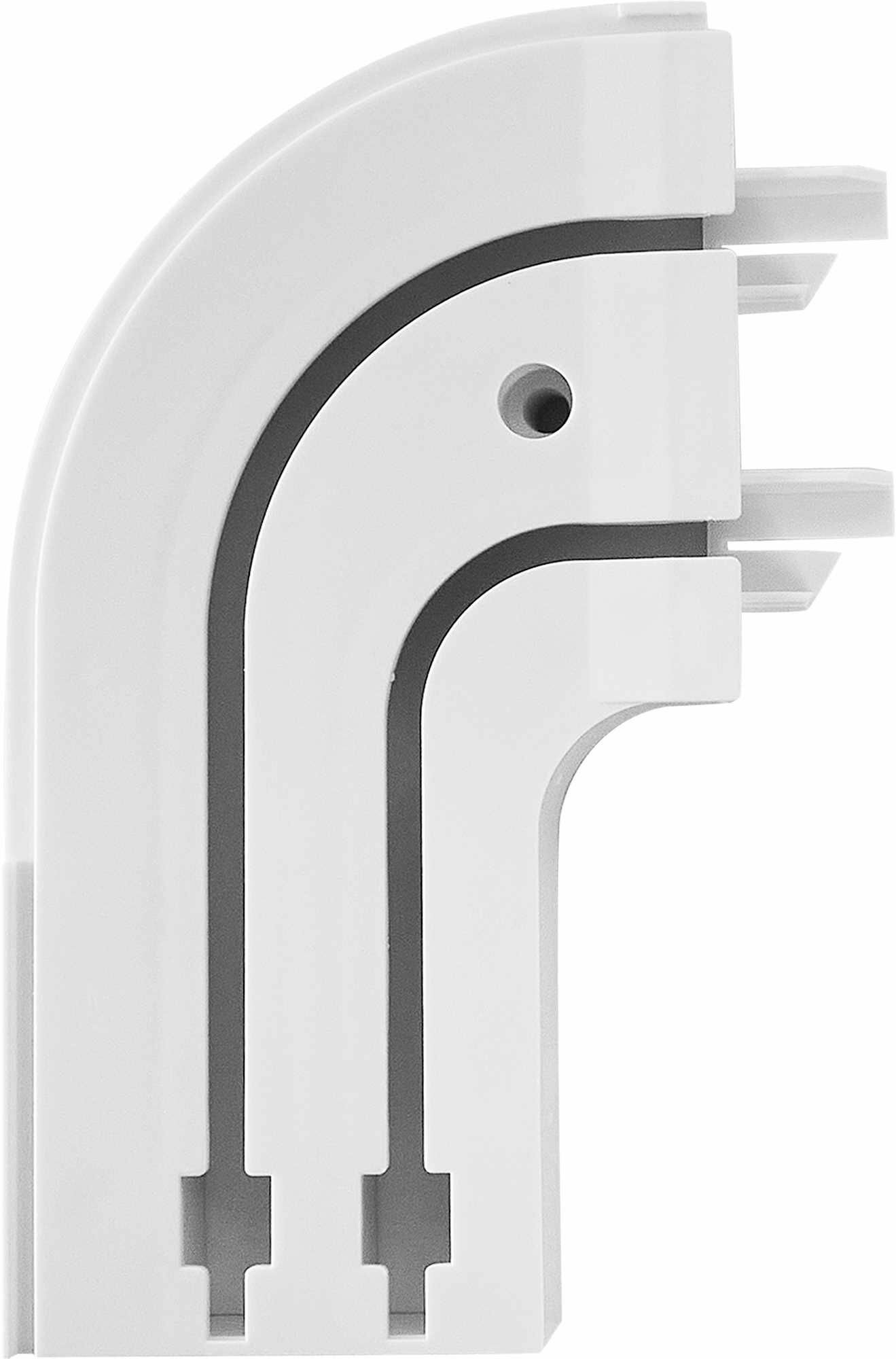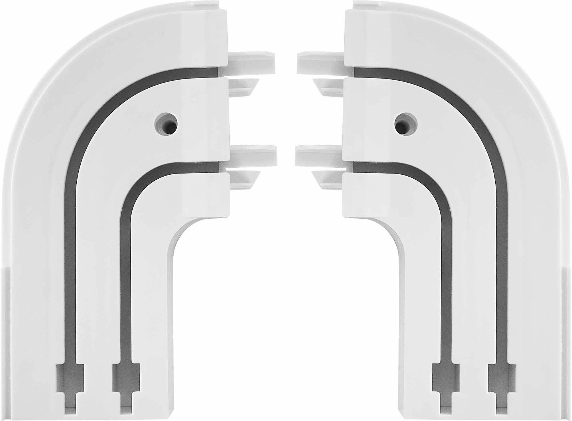 **Соединитель внутренний Inspire** используется при монтаже карнизов внутри помещений. Позволяет обогнуть угол или препятствие, оформить эркерное окно и совместить между собой две шины. Надежность крепления обеспечивается фиксаторами. Оснащен двумя рядами полозьев для крючков.