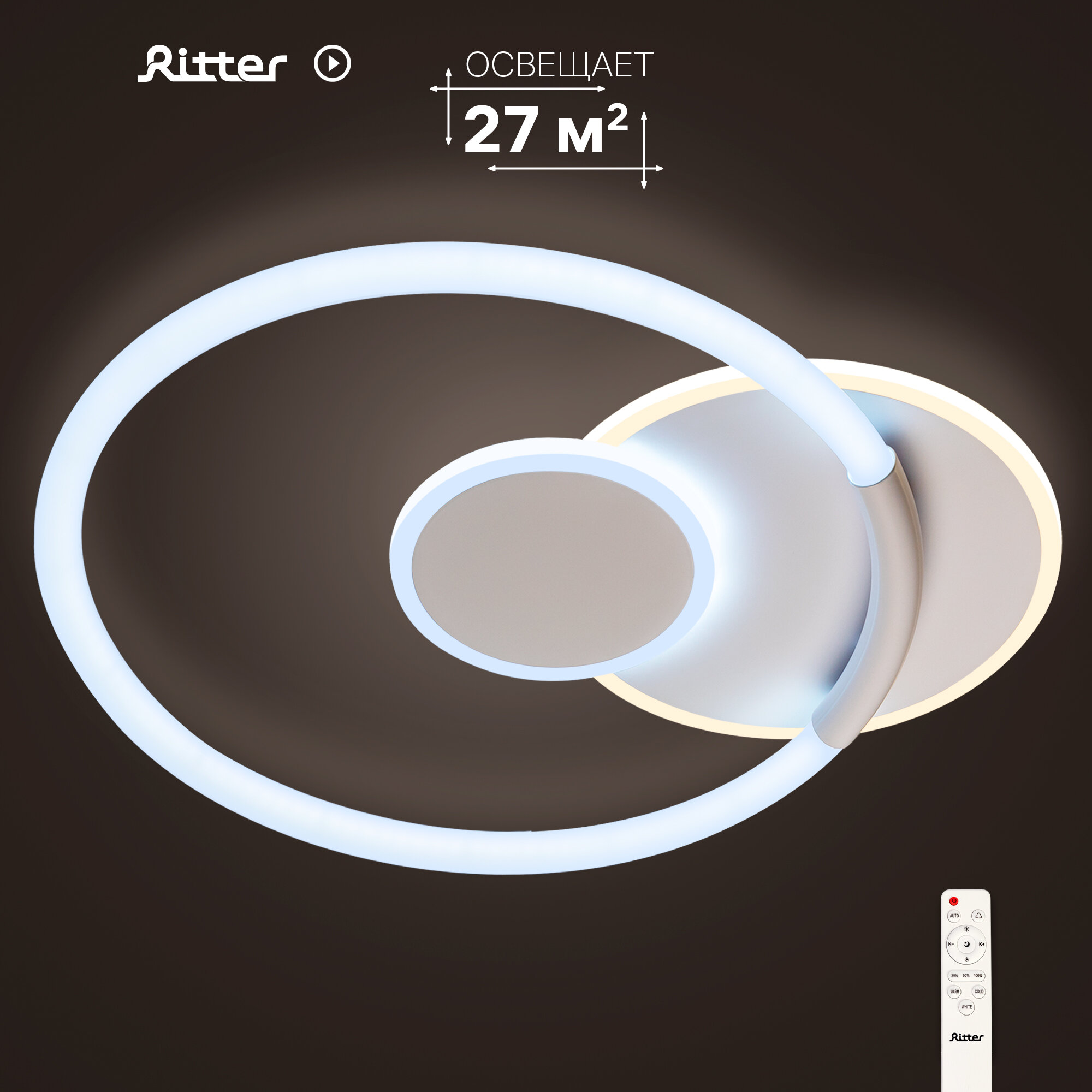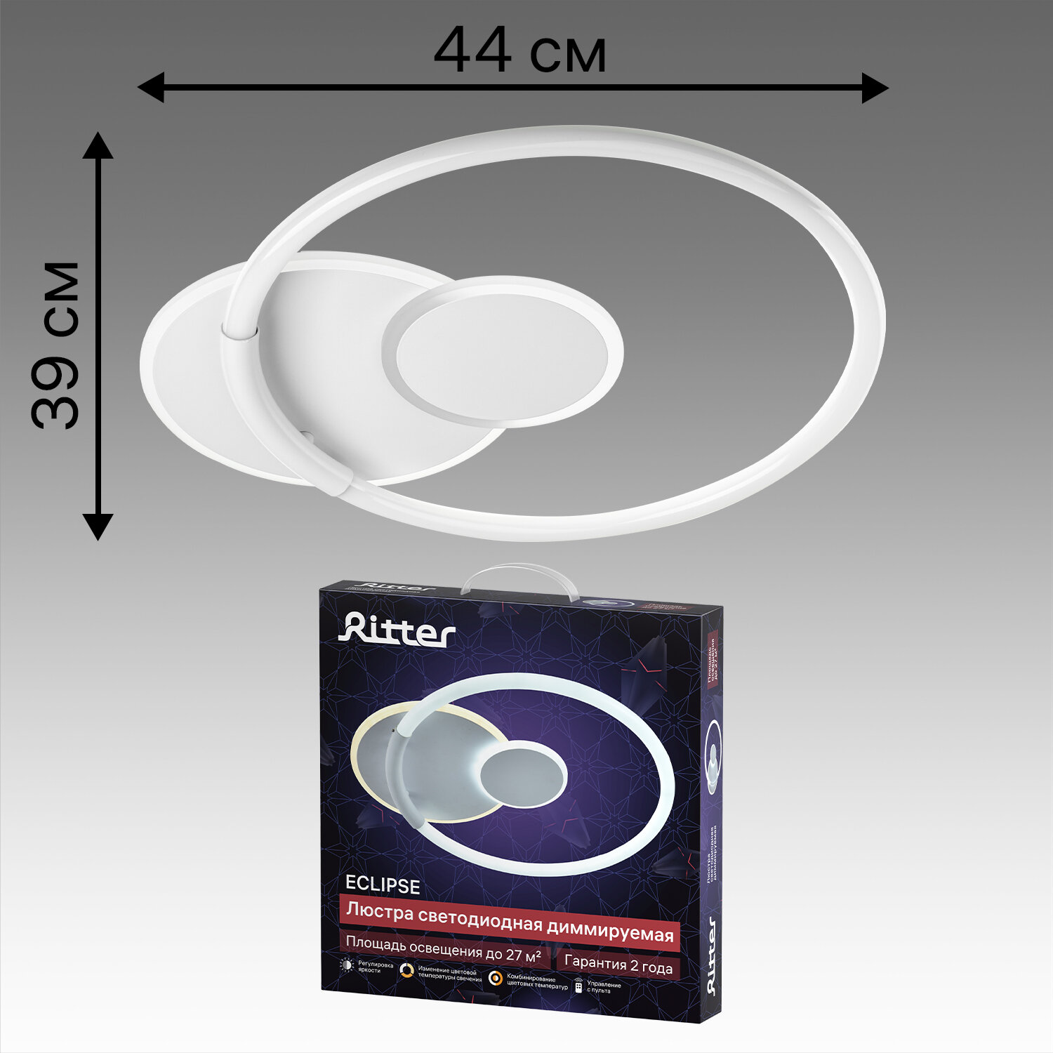 Люстра светодиодная «Eclipse» 516181 с пультом управления 27 м² регулируемый белый свет цвет белый RITTER