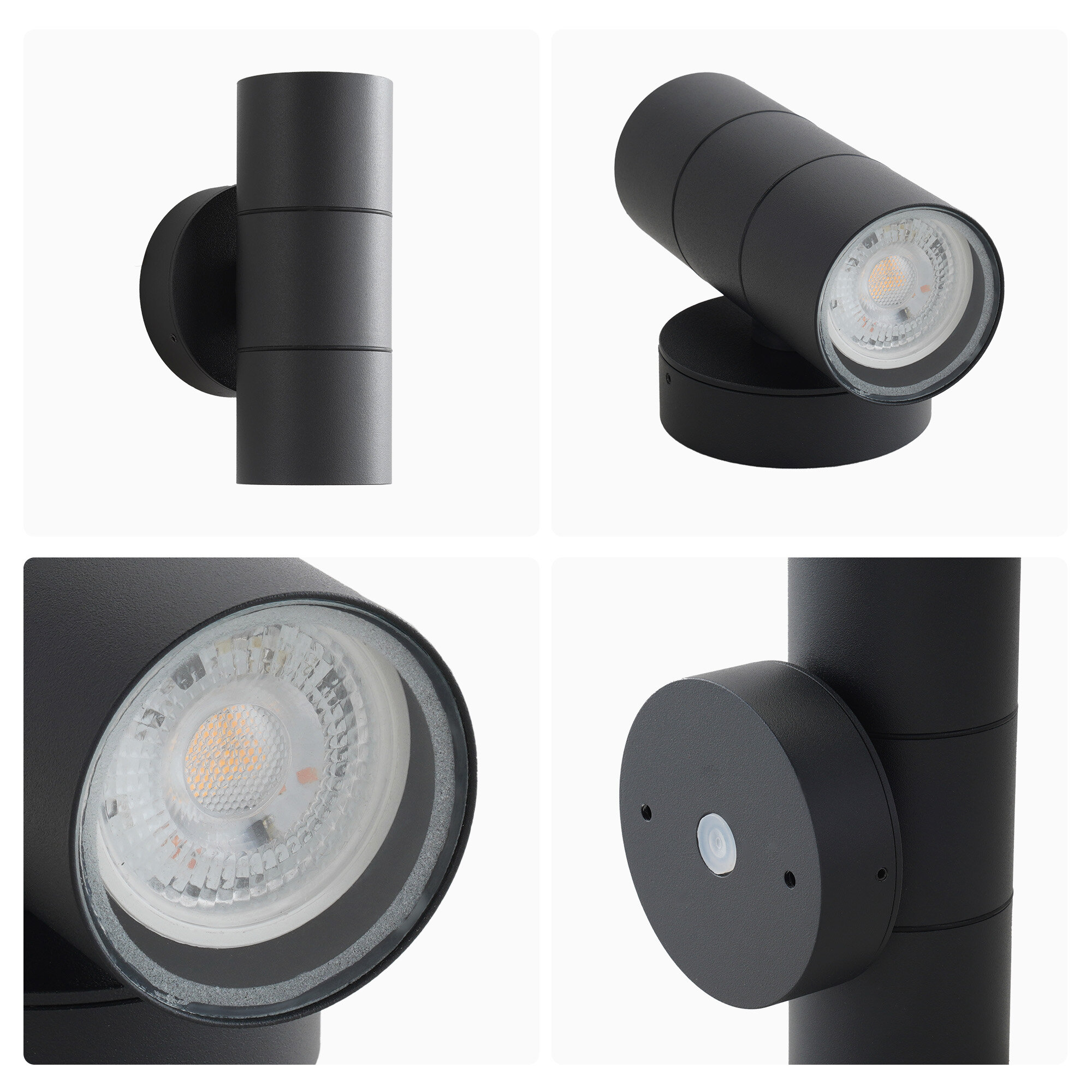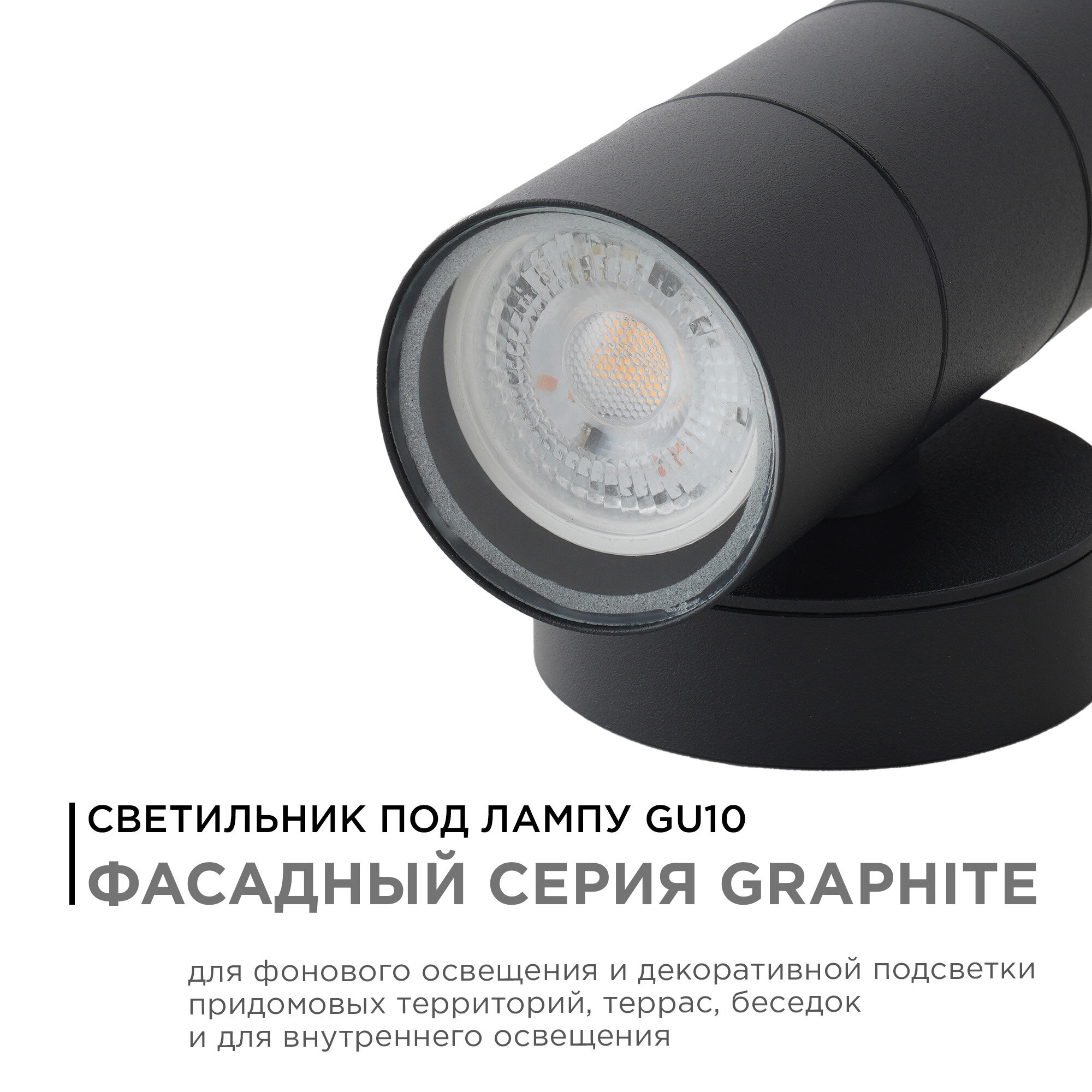 **Светильник настенный Apeyron** выполнен в современном стиле. Предназначен для общего и декоративного освещения садовых дорожек, декоративных лужаек, скверов, загородных участков, фасадов зданий. Корпус светильника изготовлен из алюминия, а рассеиватель ― из закаленного стекла. Материалы светильника показывают отличную устойчивость к механическим повреждениям, воздействию температуры и солнечного света. Корпус выполнен в классическом цвете графит, который впишется в любую обстановку. Данное изделие имеет размер 90х58х154 мм и предназначено для монтажа на стену. Светильник оснащен поворотным механизмом, которое позволяет настроить плафон под нужным углом свечения. Источником свечения выступают галогенные или светодиодные лампы с цоколем типа 2хGU10 и максимальной мощностью 35 Вт (приобретаются отдельно). Светильник работает от сети 230 Вольт и не требует дополнительных устройств при подключении. В комплект входят 2 дюбеля и 2 винтовых самореза. Степень пылевлагозащиты изделия IP54.