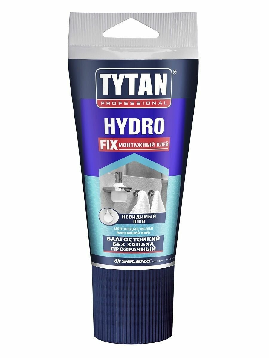 **Клей монтажный Tytan Hydro Fix** — состав универсального назначения. Характеризуется отличной адгезией к большинству строительных материалов — керамической плитке, штукатурке, полистиролу, кирпичу, древесине, бетону. Перед обработкой поверхность очищают от мусора, высушивают. Клей наносится точками или полосами. Для достижения лучшего схватывания состав можно оставить на открытом воздухе на 10-15 минут. Затем плотно прижать детали друг к другу. Критерий высыхания — изменение цвета с молочно-белого на прозрачный.