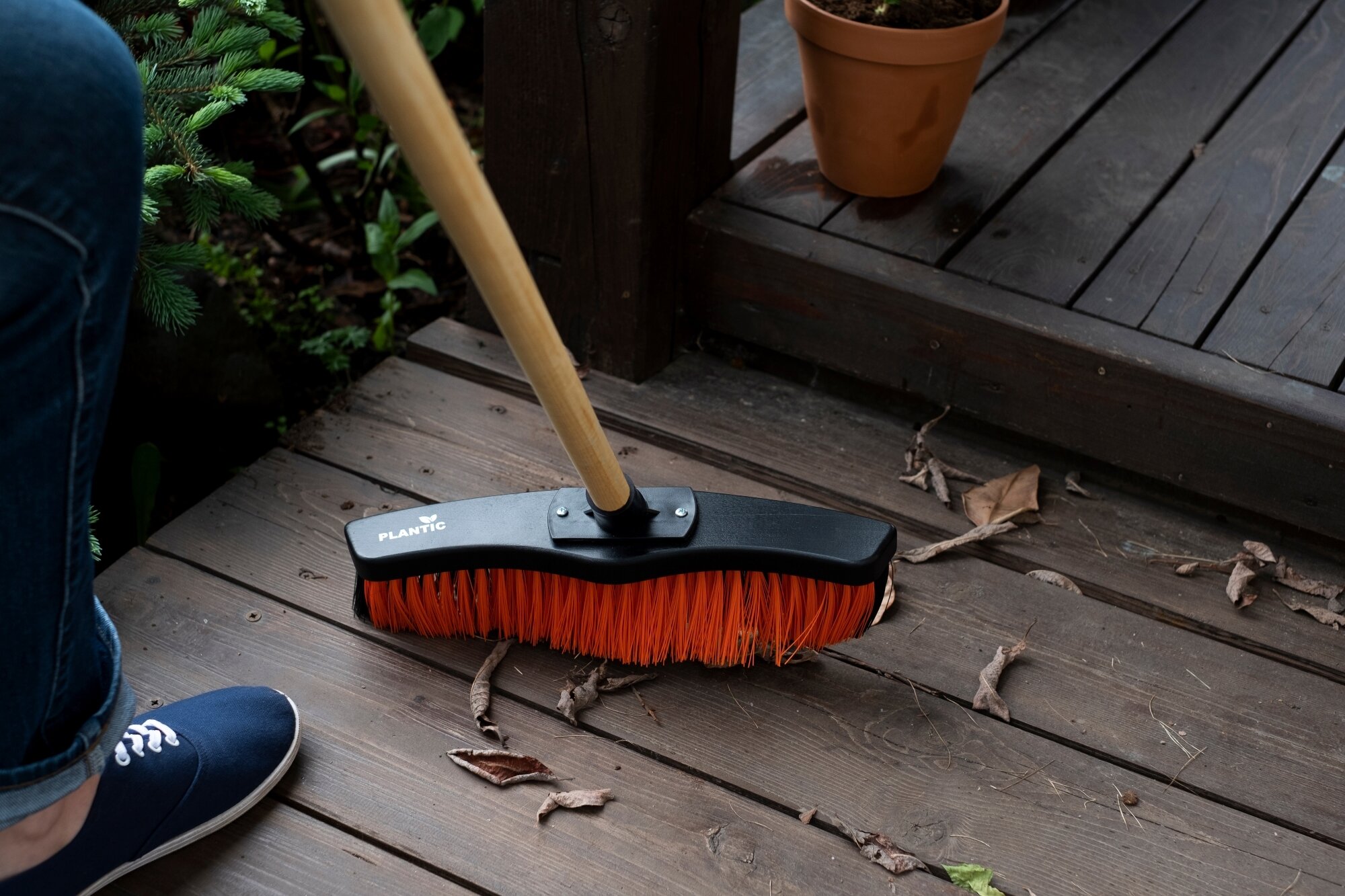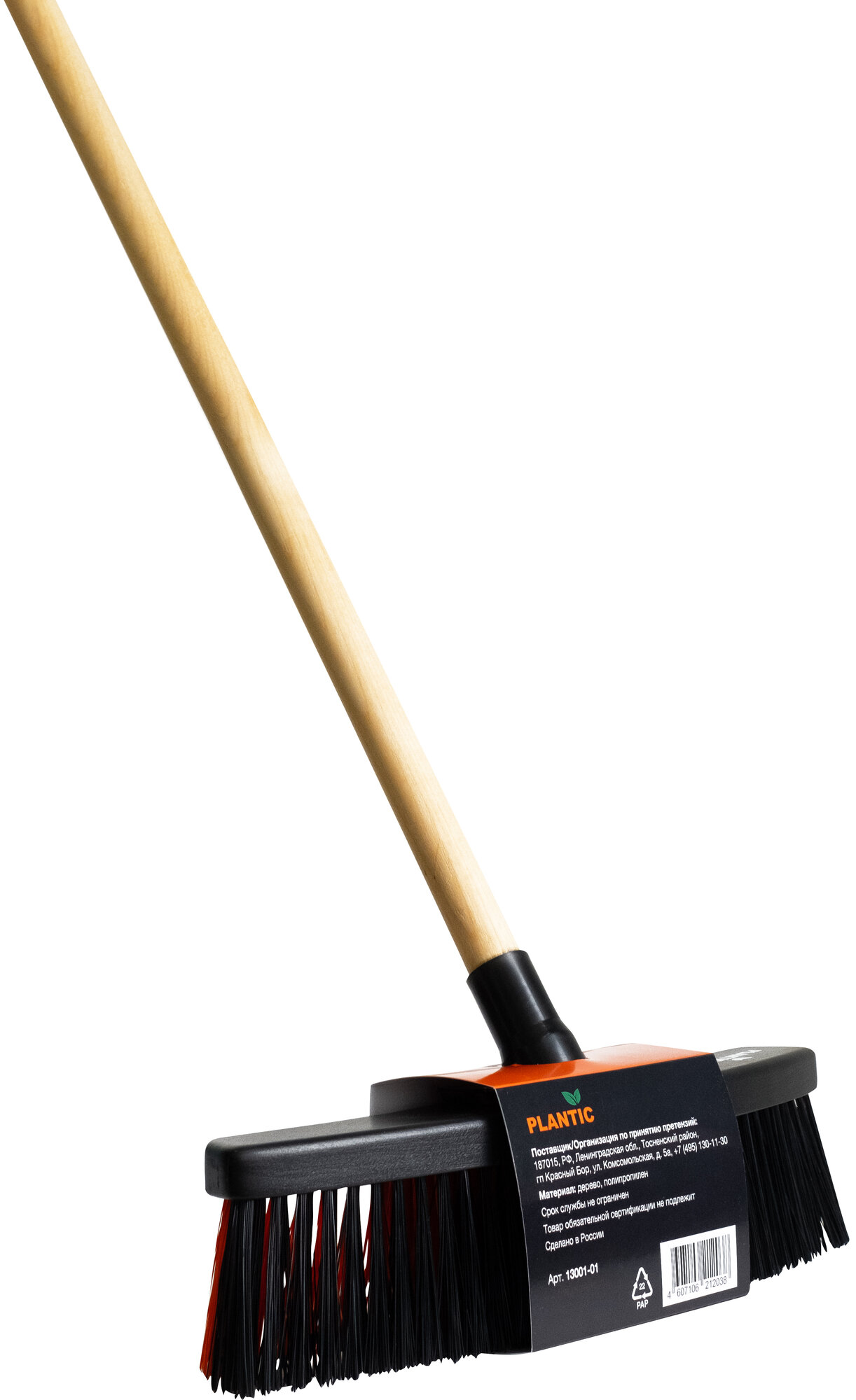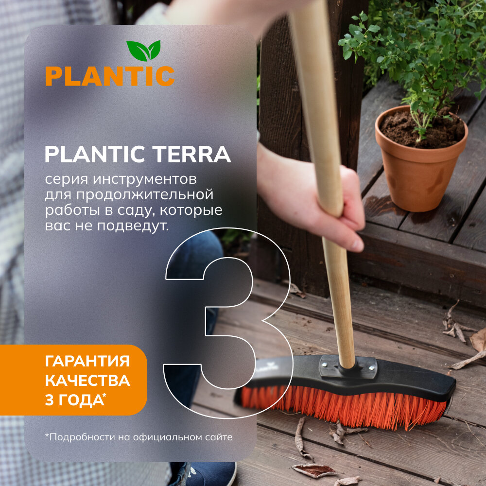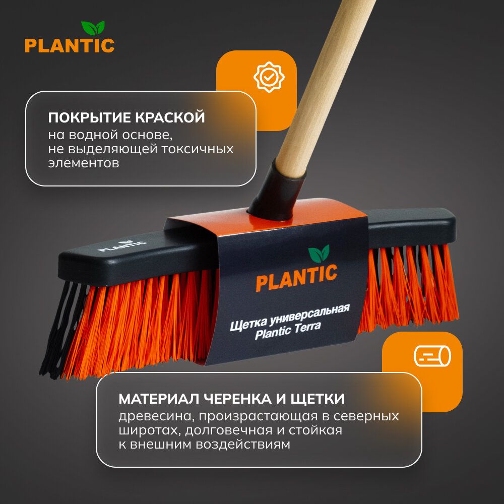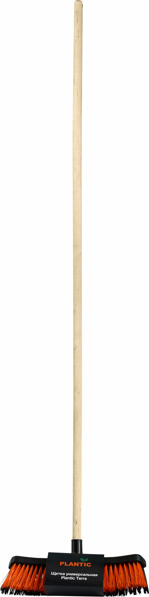 **Щетка универсальная Plantic Terra** оснащена длинным деревянным черенком. Модель используется для уборки территории от мусора и листьев. После эксплуатации изделие рекомендуется промыть под струей проточной воды.