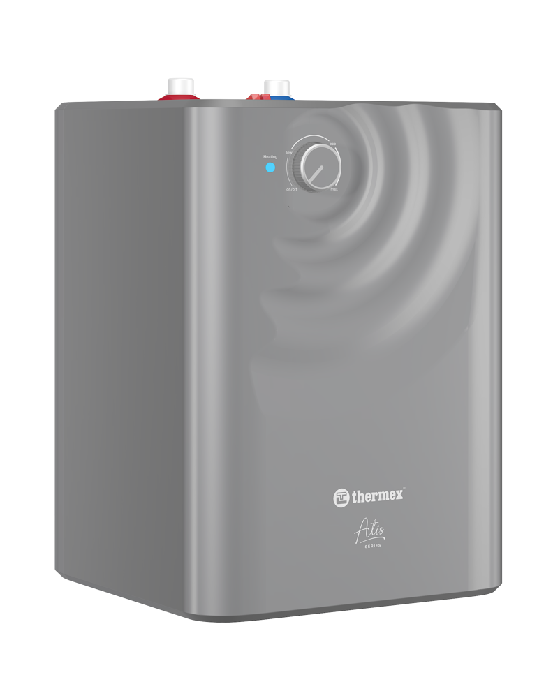 ** Водонагреватель Thermex Atis 15 U** предназначен для вертикальной установки на стену внутри помещения. Используется для нагрева воды до необходимой температуры с последующим ее поддержанием. Вмещает в себя до 15 л воды. Изготовлен из нержавеющей стали, которая обладает устойчивостью к коррозии, возникновению ржавчины. Мощность в 2,5 кВт обеспечивает быстрый нагрев воды. Устраняет проблему с отсутствием воды в периоды летнего отключения.