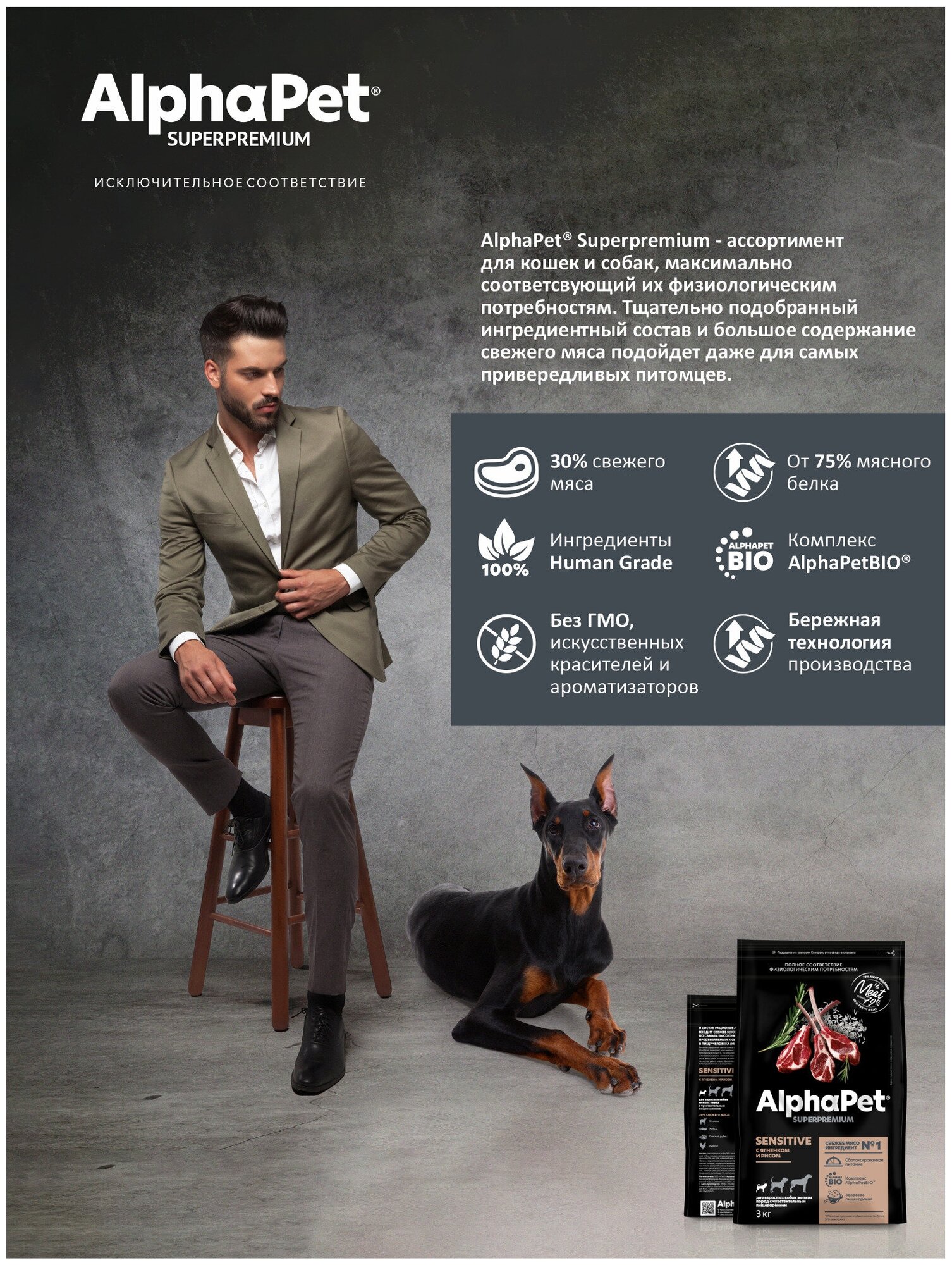 ALPHAPET Adult Sensitive Корм сух.ягненок с рисом д/собак мелких пород с чувств.пищевар.3кг (82986)