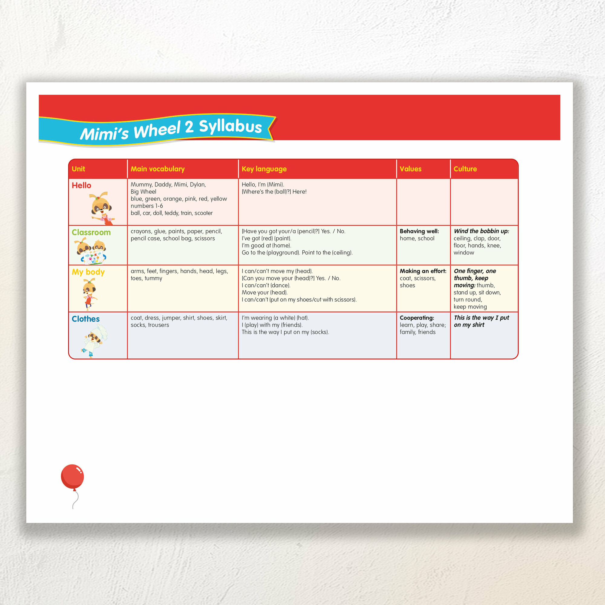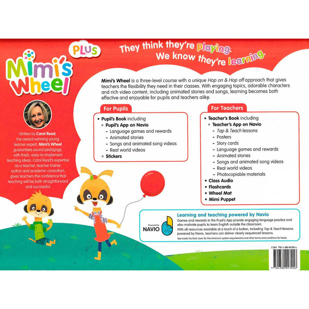 The Mimi's Wheel Pupil’s Book has a flexible, modular structure which allows teachers to align children’s English learning with the content and sequence of the wider curriculum. Pupil's Book comes with access code to Pupil’s App on Navio with gamified language practice maximising students' exposure to English outside the classroom.