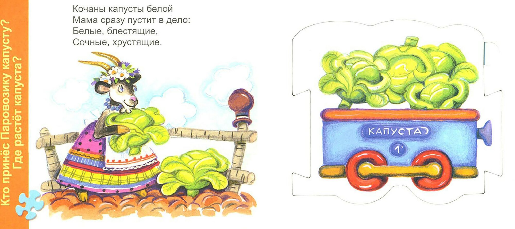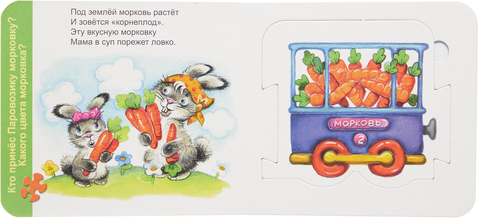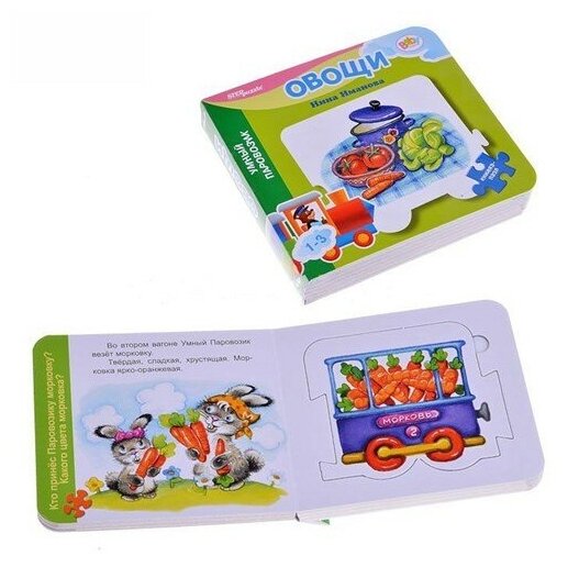 Книжка-пазл «Овощи» знакомит с названиями овощей и зверушек-персонажей, расширяет представление ребёнка об окружающем мире, знакомит с новыми понятиями.