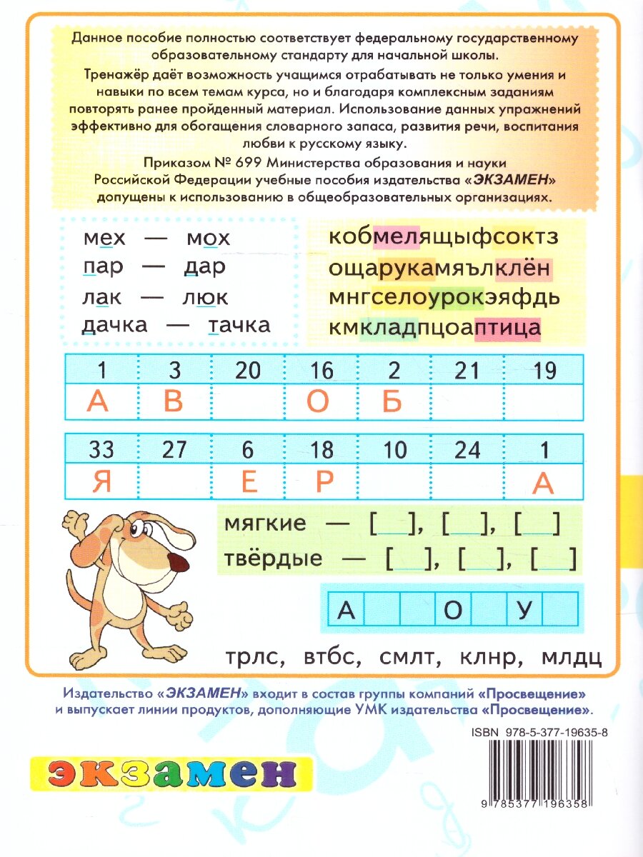 Данное пособие полностью соответствует федеральному государственному образовательному стандарту для начальной школы. Тренажёр даёт возможность учащимся отрабатывать не только умения и навыки по всем темам курса, но и благодаря комплексным заданиям повторять ранее пройденный материал. Использование данных упражнений эффективно для обогащения словарного запаса, развития речи, воспитания любви к русскому языку. Пособие предназначено для учащихся, учителей начальной школы и родителей, которые хотят помочь своим детям преодолеть трудности в освоении программы.