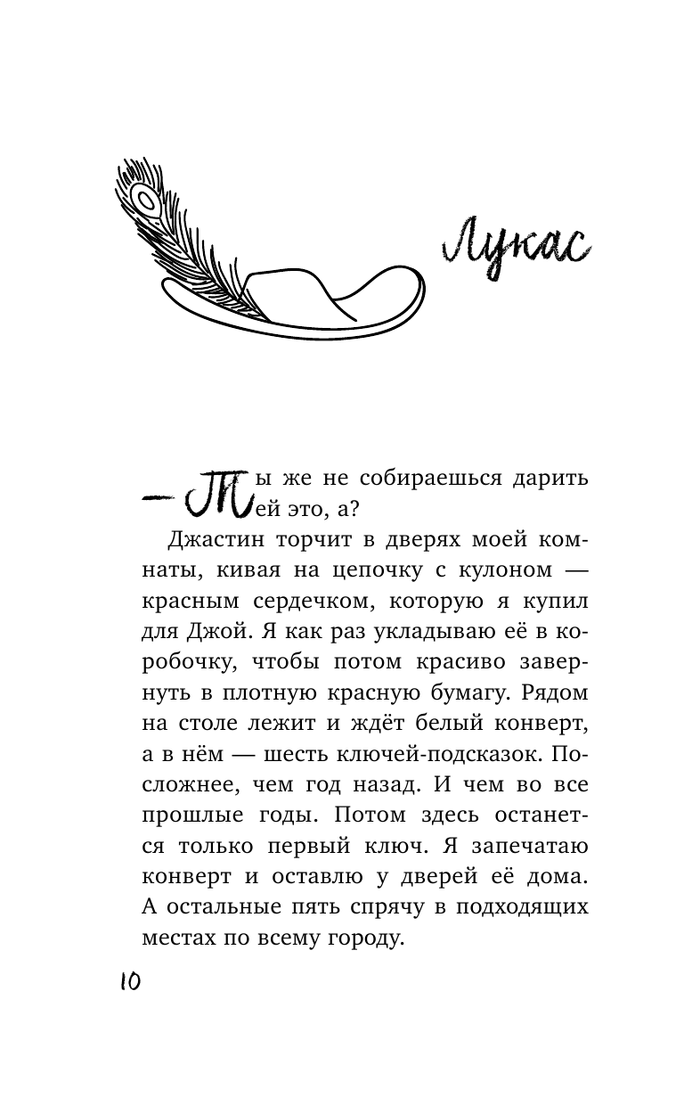 Шутки на двоих, любимый столик в пиццерии, разговоры под звёздами и первая любовь, которая вот-вот должна случиться. Это лето должно было запомниться Лукасу и Джой навсегда… Но всё пошло не так. И теперь один из них должен найти ключи - письма-подсказки, которые оставил лучший друг, - или лучше сказать возлюбленный? Ведь только так можно понять, что же между ними было. И только так можно вылечить разбитое сердце. Для этого нужно всего лишь открыть первый конверт…