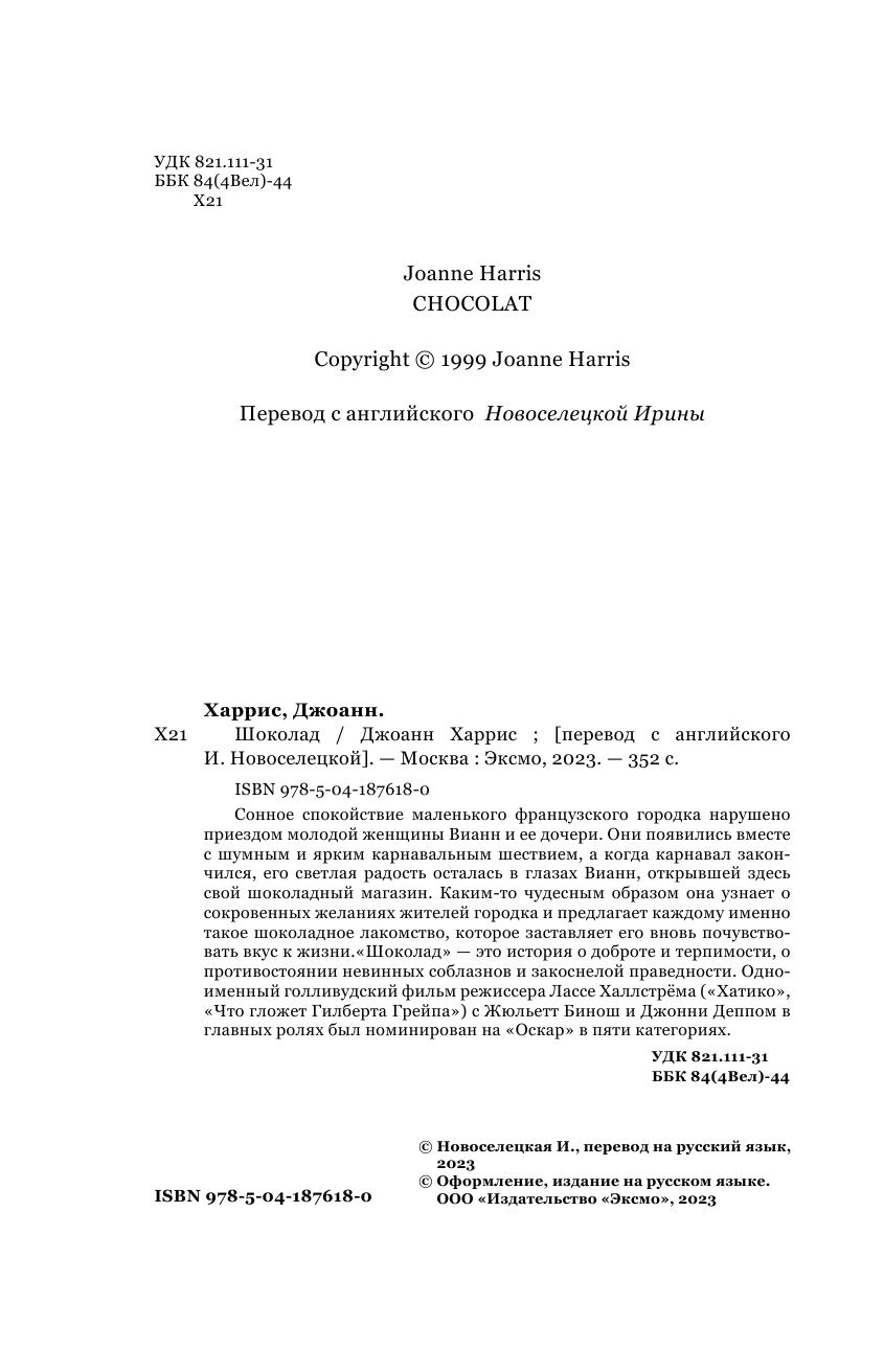 | Серия | Шоколад. Авторская серия Джоан Харрис |