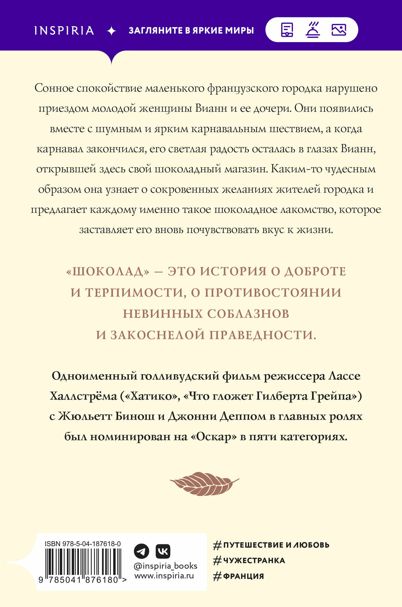 Книга: Шоколад (Джоанн Харрис); Эксмо, Inspiria, Редакция 1, 2023