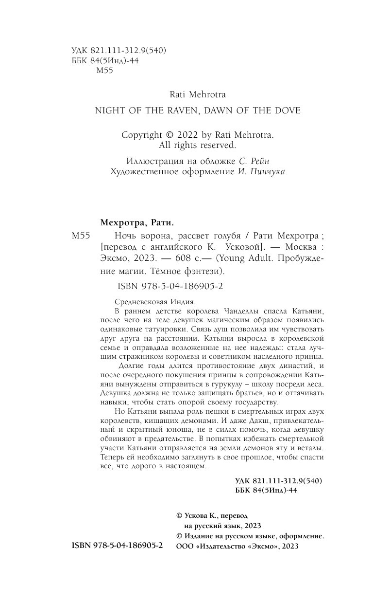 Ночь ворона рассвет голубя (Рати Мехротра); Эксмо, 2023