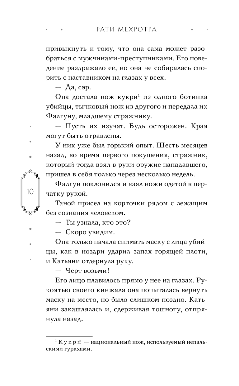 Очень необычную книгу я приобрела! Ничего подобного про Индию я еще не читала. Книга зацепила меня с первой строчки, несмотря на то, что многие слова для меня были в новинку, и приходилось сидеть с гуглом! Но как же история красиво написана, как качественно описан мир Индии! Также книгу очень комфортно читать благодаря узорам на страницах и крупному шрифту! Советую тем, кто хочет попробовать что-то совершенно новое в жанре фэнтези.