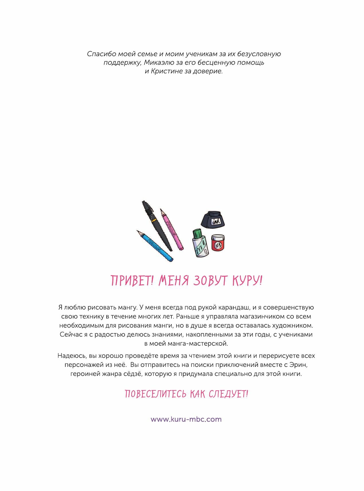 Внутри книги есть небольшая, но очень милая история, нарисованная популярной художницей и автором этой книги – Куру. Прочитав её, ты сможешь вдохновиться на создание своей манги!