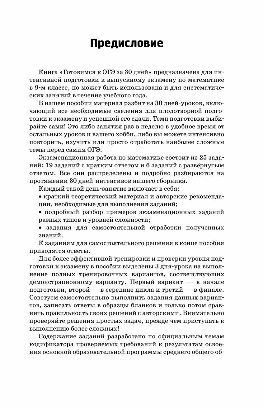 Книга «Готовимся к ОГЭ за 30 дней» предназначена для интенсивной подготовки к экзамену, но может быть использована и для систематических занятий в течение учебного года.