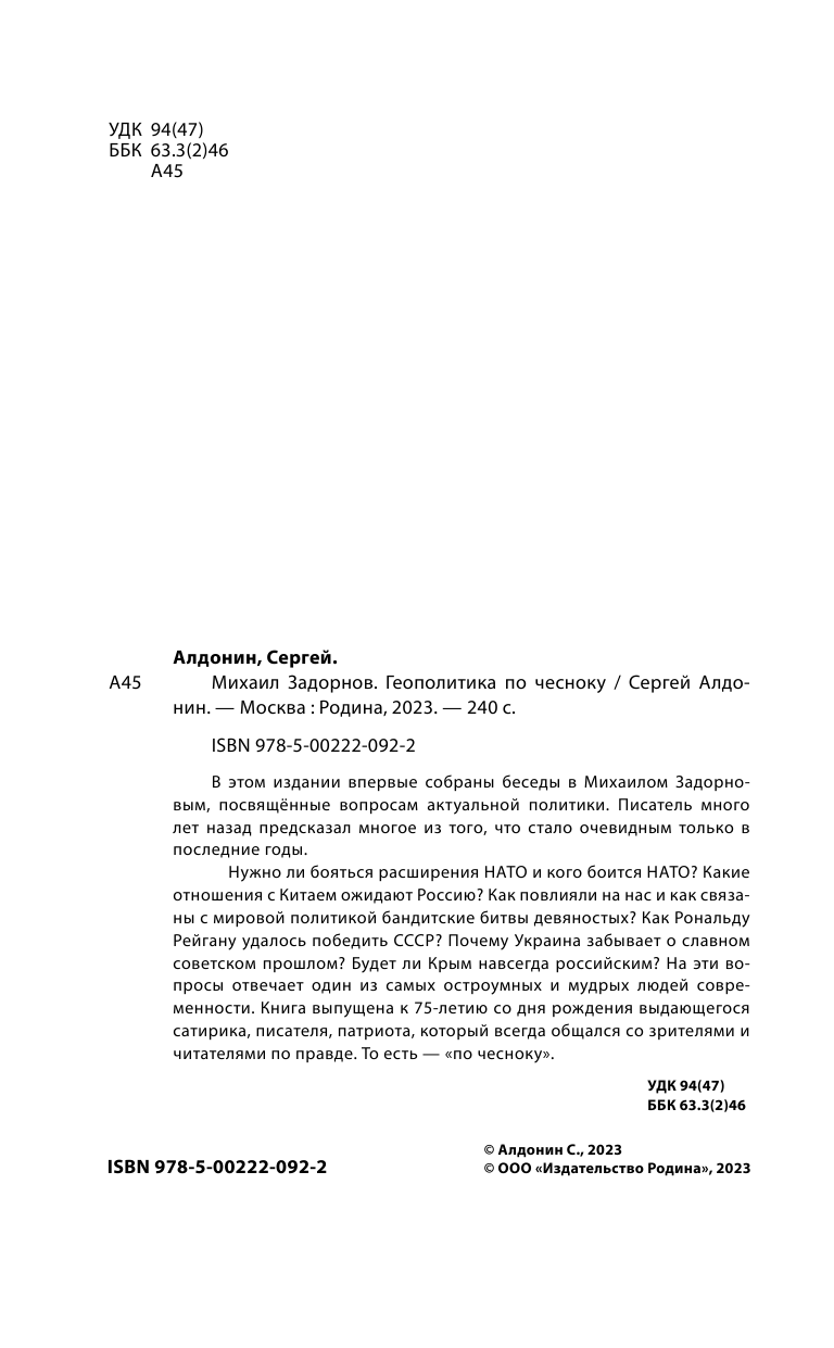 Михаил Задорнов. Геополитика по чесноку (Сергей Алдонин); Алисторус, 2025