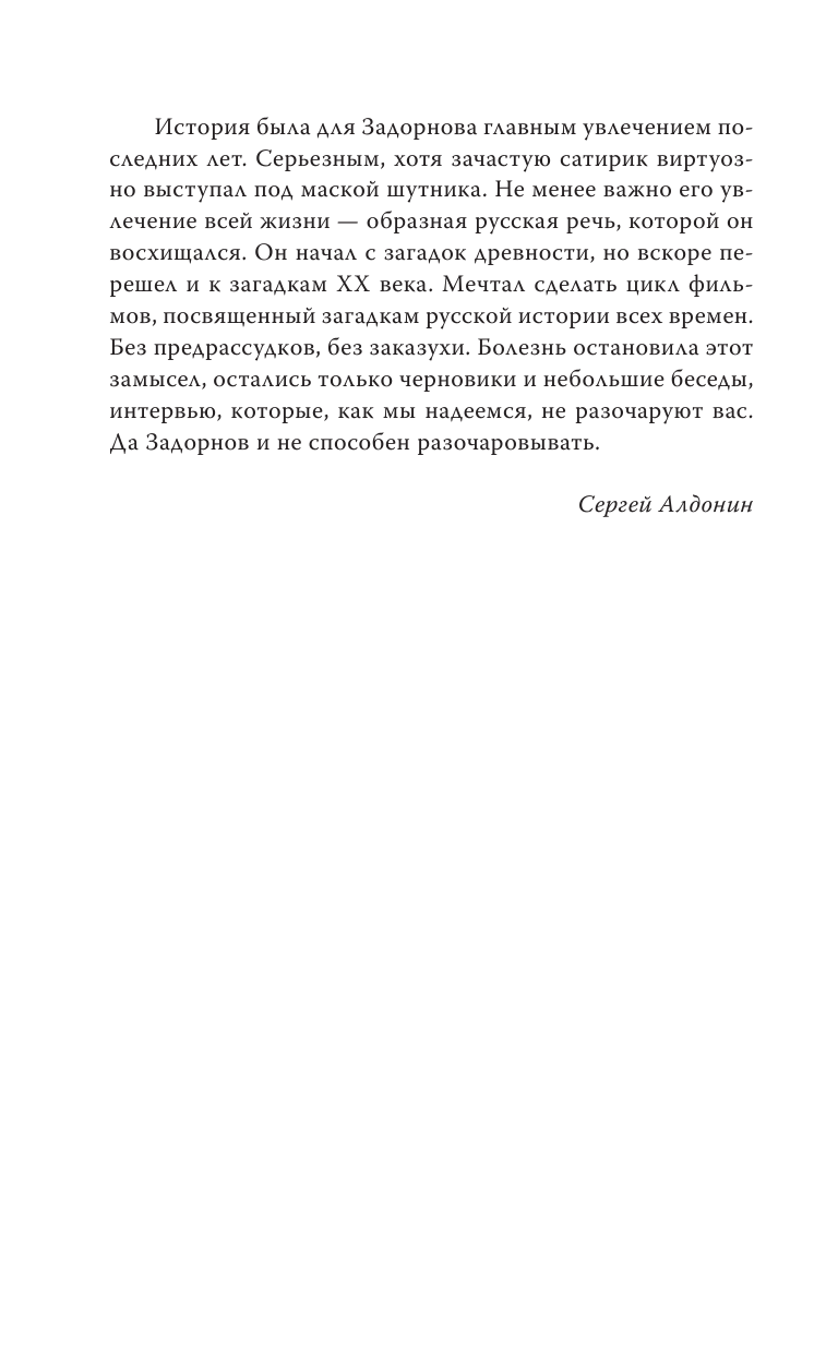 В этом издании впервые собраны беседы с Михаилом Задорновым, посвященные вопросам актуальной политики. Писатель много лет назад предсказал многое из того, что стало очевидным только в последние годы.