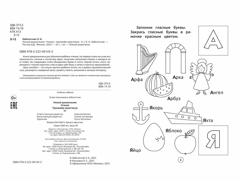 Сервис сравнения цен СкидкаГИД предлагает сравнить цены на товар «Книга: Умный дошкольник. Чтение: тренажер-практикум: 5+ (Заболотная Этери Николаевна); Феникс, 2023»