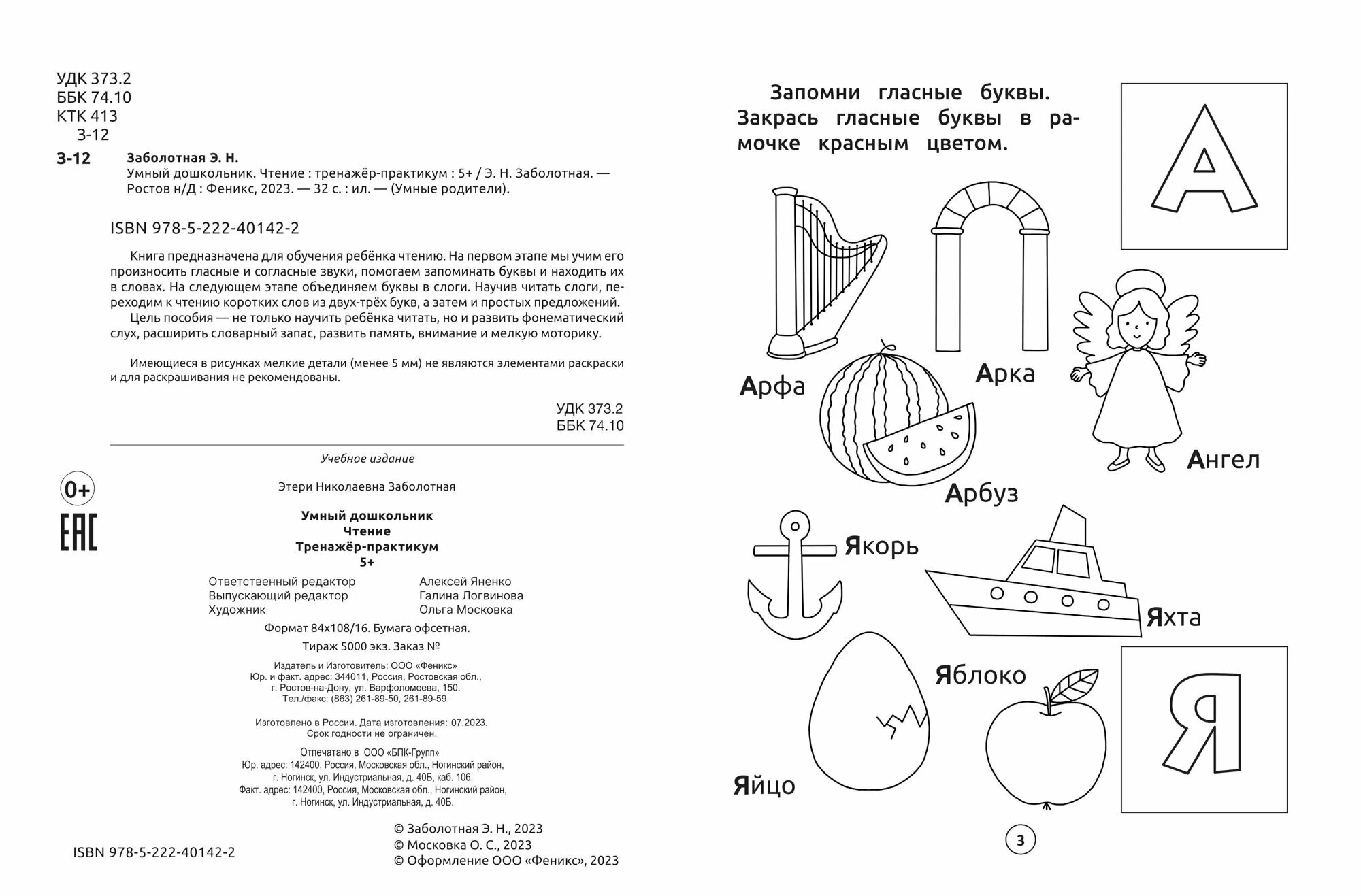 Умный дошкольник. Чтение: тренажер-практикум: 5+ (Заболотная Этери Николаевна); Феникс, 2023
