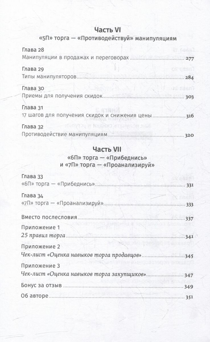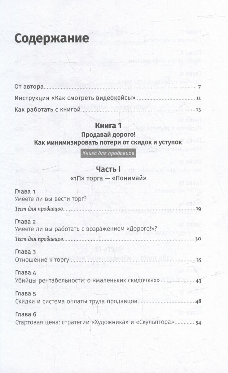 Дмитрий Ткаченко, автор бестселлера «Скрипты продаж» и один из лучших бизнес-тренеров и консультантов по версии журнала «Управление персоналом», работал над ней более пяти лет. Он на живых примерах разбирает приемы, правила, алгоритмы и ошибки при ведении ценовых переговоров. Книга написана с двух позиций: первая ее часть посвящена тому, как продавцу минимизировать скидки и уступки; вторая, наоборот, содержит советы для тех покупателей, которые хотят получить максимум, а заплатить как можно меньше. Вы узнаете правила аргументации, поймете, как установить стартовую цену и с чего начать разговор о скидках, научитесь противодействовать манипуляциям и делать уступки, сохраняя рентабельность сделки, станете грамотным покупателем или успешным продавцом.