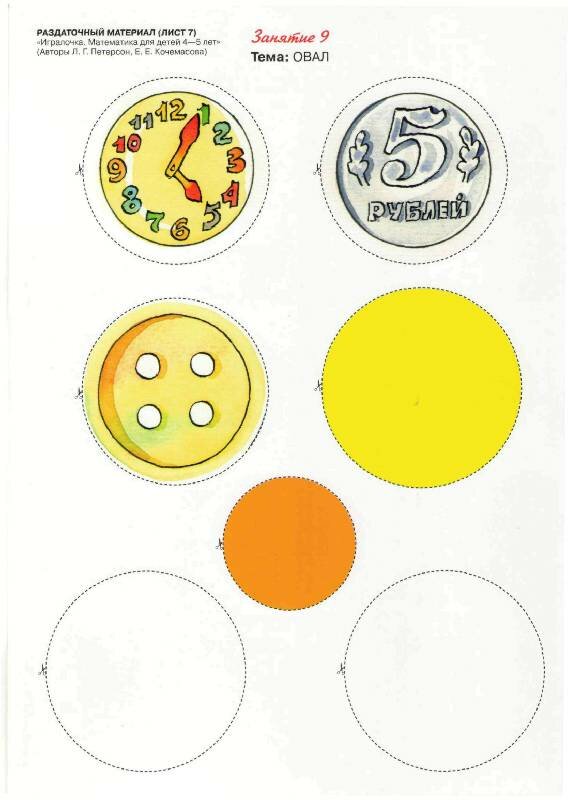 На разных занятиях возможно различное использование раздаточного и демонстрационного материала: в одних случаях необходим только раздаточный или только демонстрационный материал, в других - и тот и другой, в третьих - использование данных материалов не запланировано, т. к. дети на занятии пользуются игрушками, красками, соленым тестом и т. п.