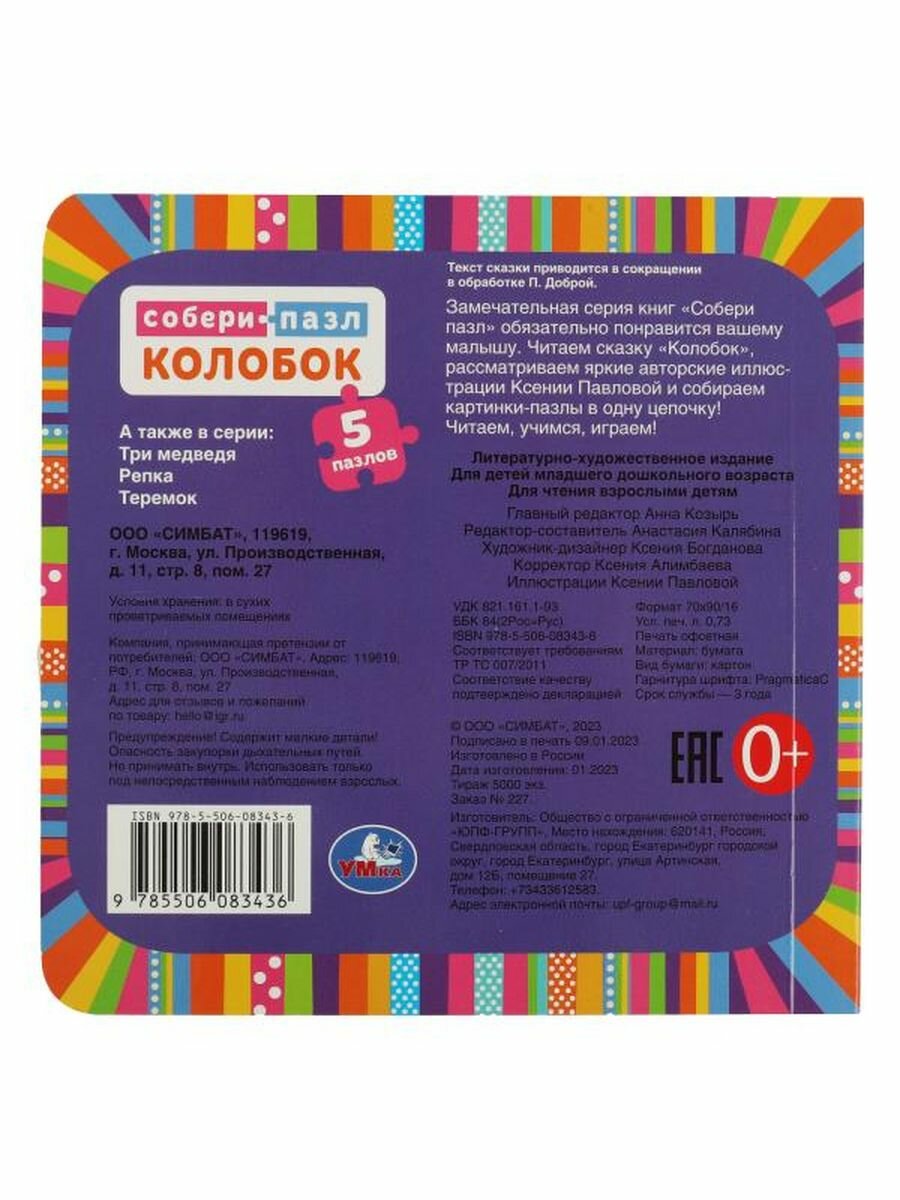 Книга с 5 пазлами. Колобок ТМ «УМка»: