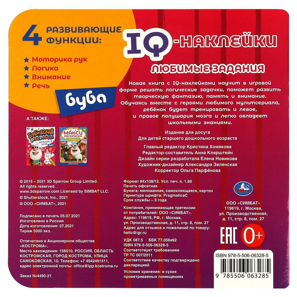 IQ-наклейки. Буба. Любимые задания (+ 35 наклеек) (Кларштейн А. - редактор-составитель); Умка, 2021