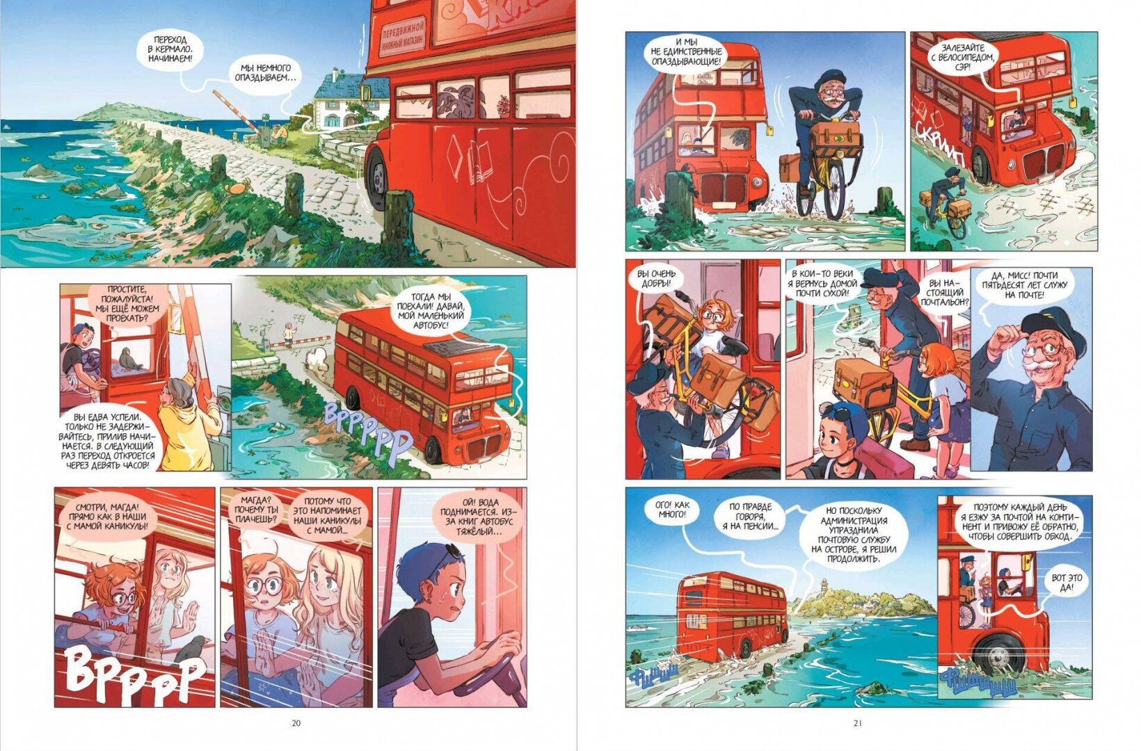 Магическая история в формате комикса для детей и подростков. В этой книге ребята прочитают о двух сёстрах — Эльфи и Магде, которые после смерти мамы живут с тётей. Однажды из Лондона возвращается их старшая сестра, которая превратила английский автобус в передвижной книжный магазин, чтобы ездить по миру. Тут-то и начинается самое интересное! Первым делом сёстры отправляются на таинственный бретонский остров. Но не только там есть секреты: Эльфи узнаёт, что ей от матери достался волшебный дар...