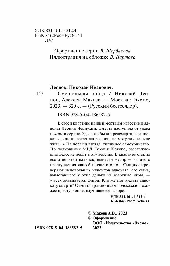 Книга: Смертельная обида (Леонов Николай Иванович, Макеев Алексей Викторович); ООО "Издательство "Эксмо", 2023