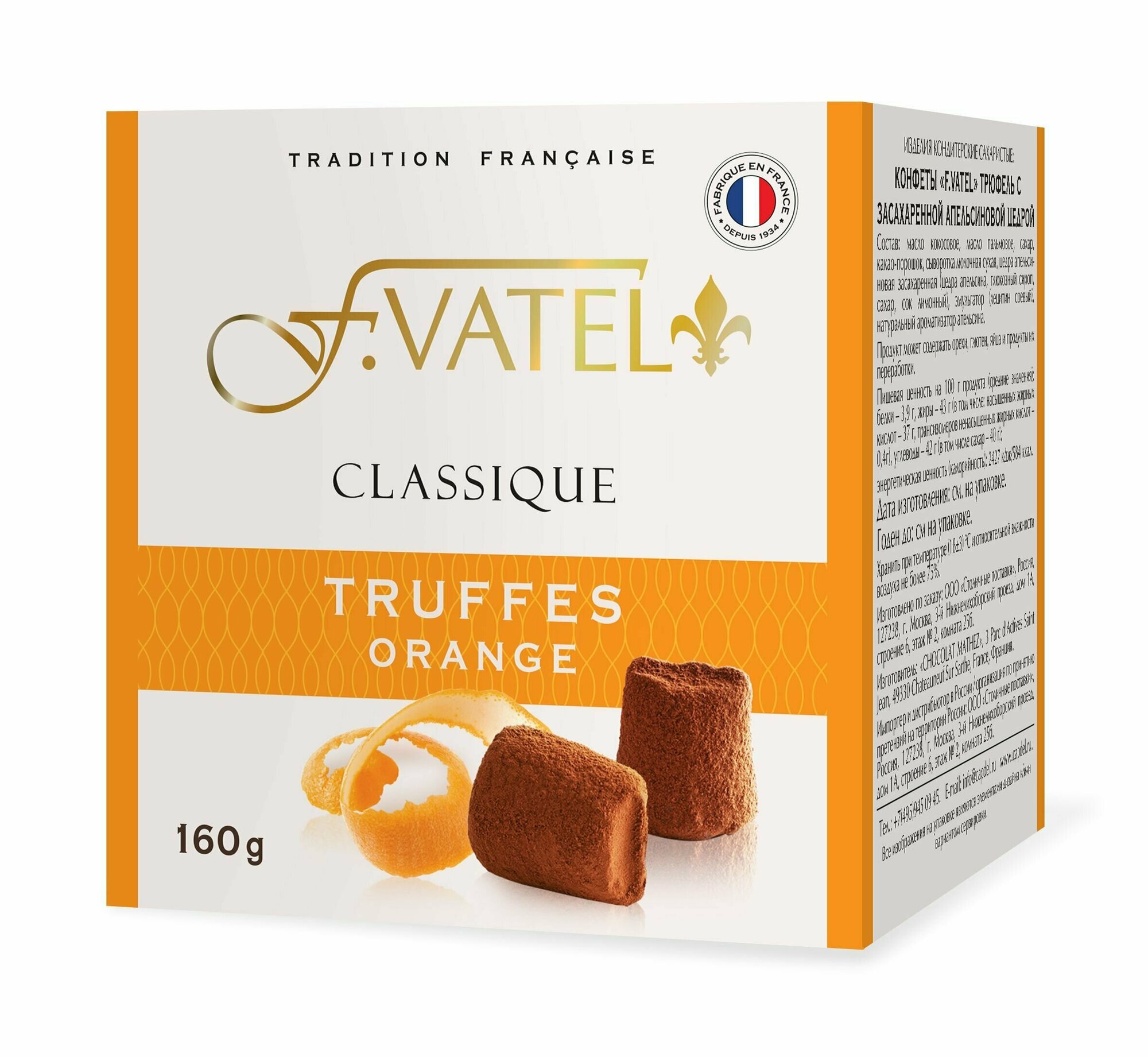 Конфеты F. Vatel Трюфель с засахаренной апельсиновой цедрой 160г Chocolat Mathez