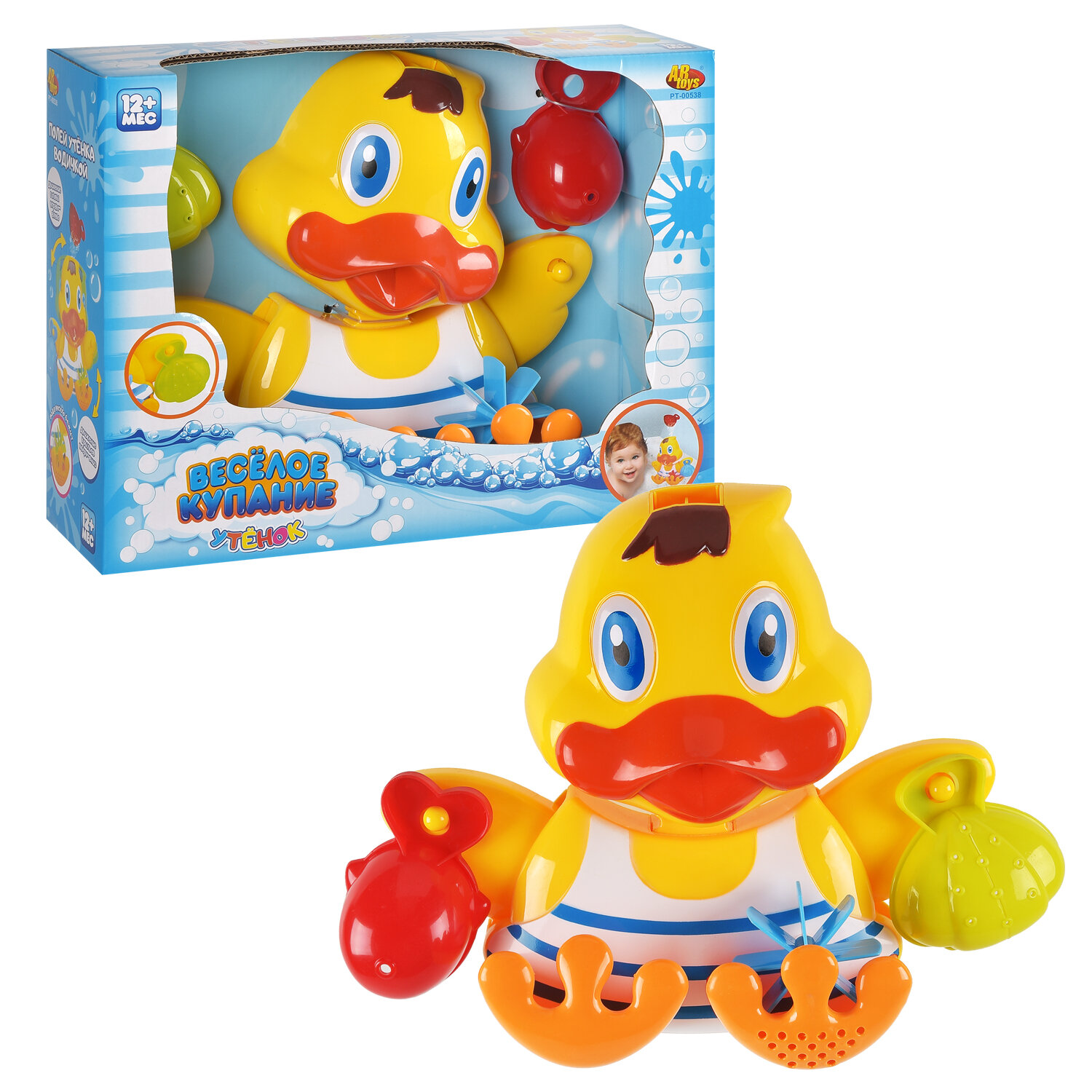 Набор игрушек для ванны ABtoys Веселое купание Утенок-мельница для ванны 3 предмета Junfa Toys