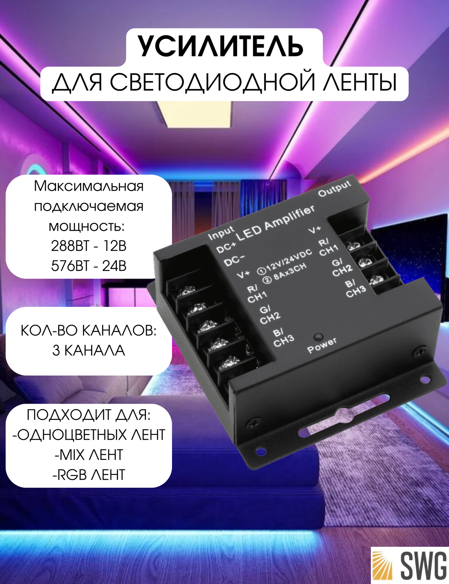 Усилитель RGB24АЧерный AMP-RGB-24A-Bl SWG 001071 Усилители