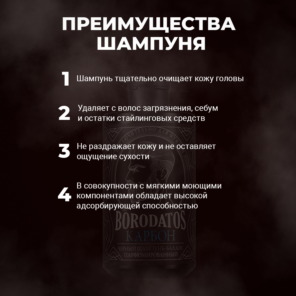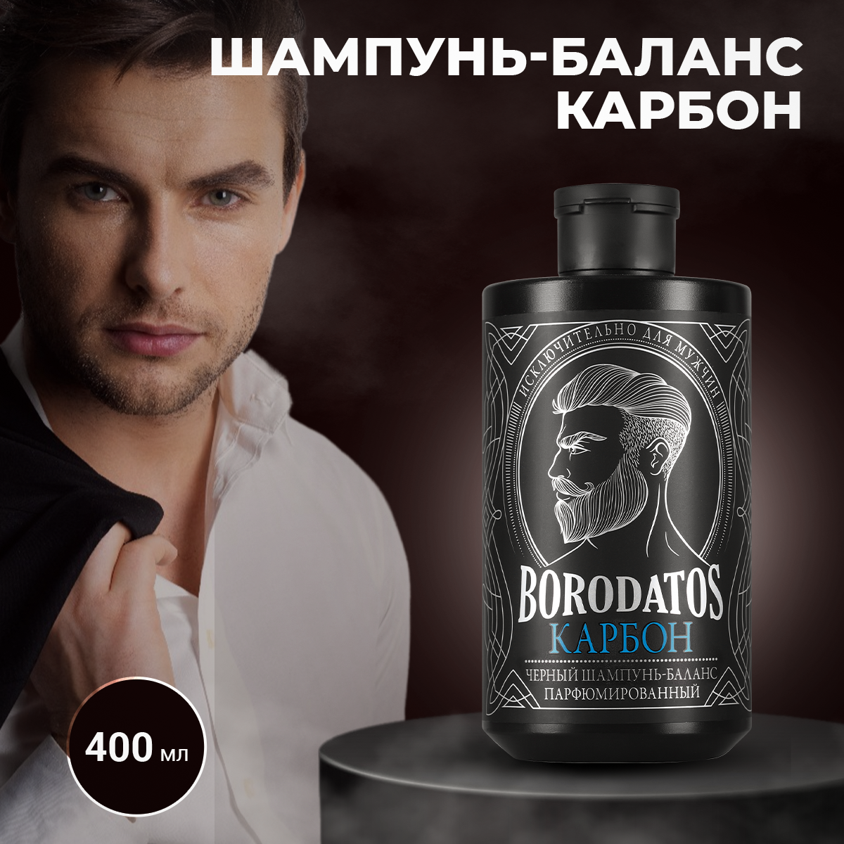 Шампунь-баланс для волос Borodatos Карбон черный 400 мл