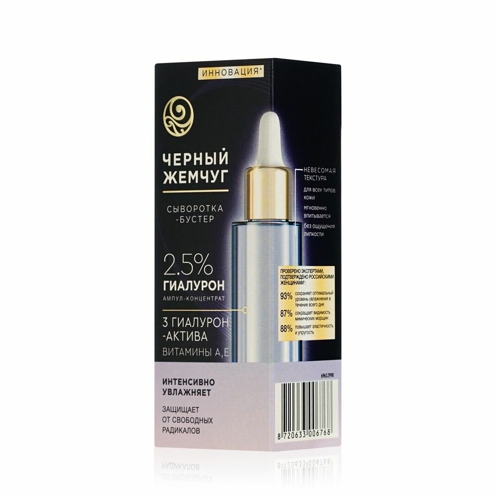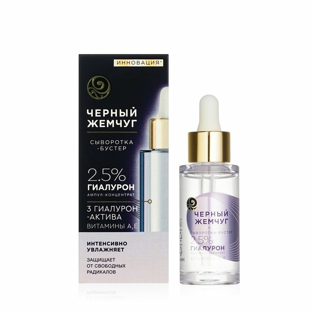 Сыворотка-бустер для лица Черный Жемчуг Увлажняющая с гиалуроновой кислотой витаминами A и E 30 мл