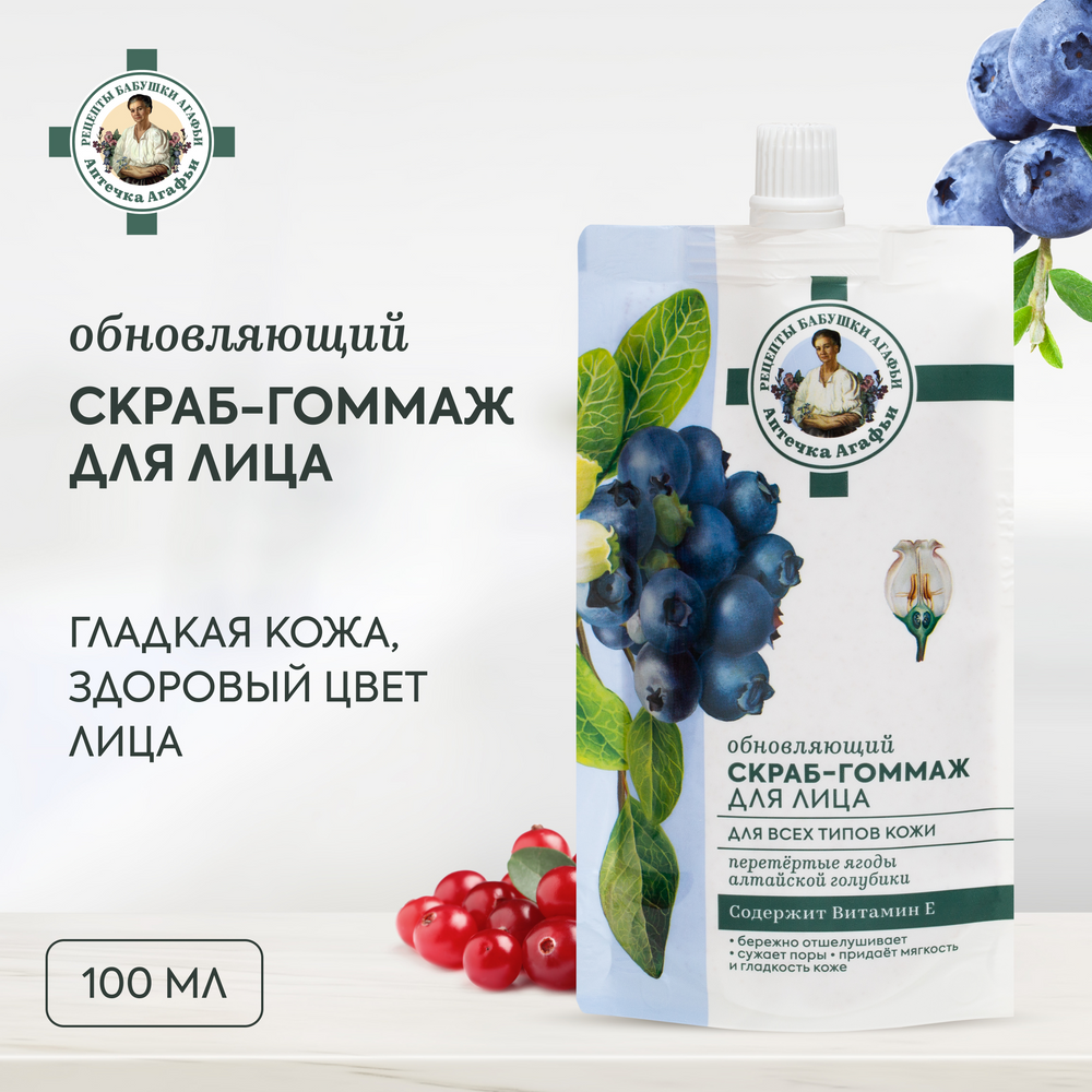 Скраб-гоммаж для лица Рецепты Бабушки Агафьи Обновляющий для всех типов кожи 100 мл