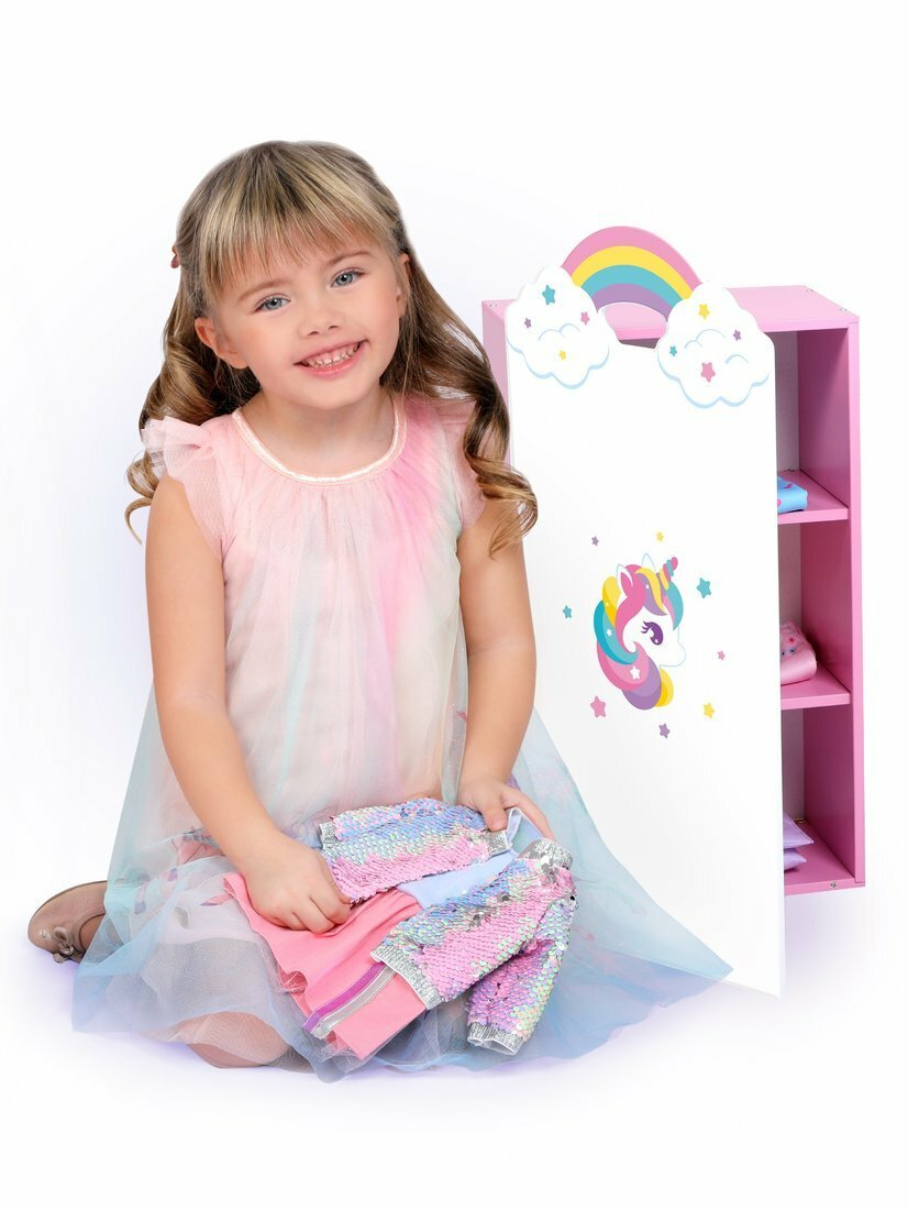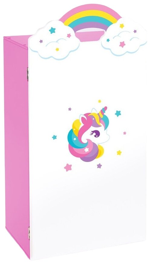 Одностворчатый шкаф Единорог позволит аккуратно хранить вещи и аксессуары любимой куклы в одном месте! Внутри шкафа предусмотрены 2 полочки, разделяющие его пространство на 3 отделения. Юная леди сможет распределить кукольные вещи по категориям: например, одно отделение заполнить зимней одеждой, второе летними нарядами, а третье аксессуарами. Шкафчик приучит малышку к порядку и поможет маме поддерживать порядок в детской комнате.