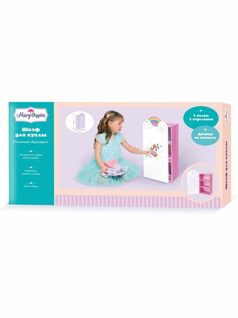 На сегодняшний день товар «Мебель для кукол Mary Poppins Шкаф одностворчатый Единорог» можно купить с кешбеком в 1 магазине: Яндекс.Маркет