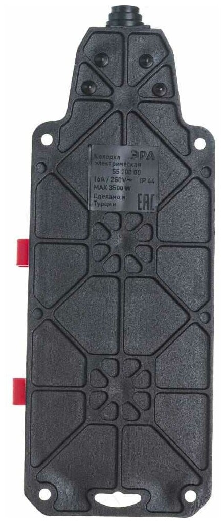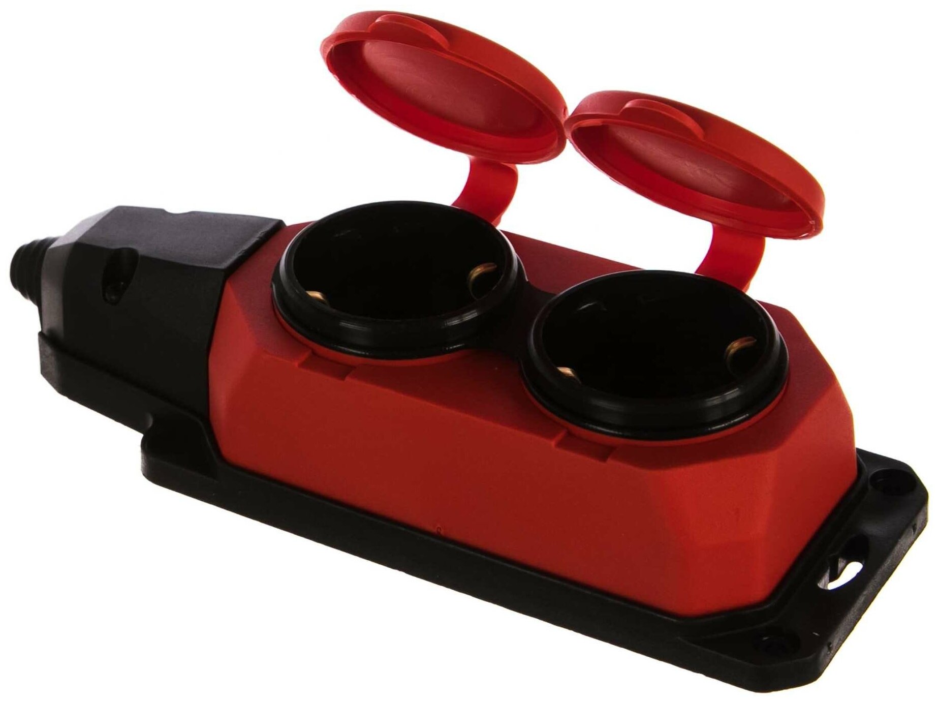 Колодка электрическая каучуковая Эра K-2e-RED-IP44 c заземлением, 2 розетки. Корпус выполнен из пыле- и влага- защищенного материала (каучук). Рассчитана на максимальную мощность 16А / 3500 Вт и для подключения кабеля сечением до 2,5 мм2. Электрическая колодка подойдет для тех, кто хочет сделать удлинитель самостоятельно. Также может использоваться как накладные розеточные блоке в подсобных помещениях.