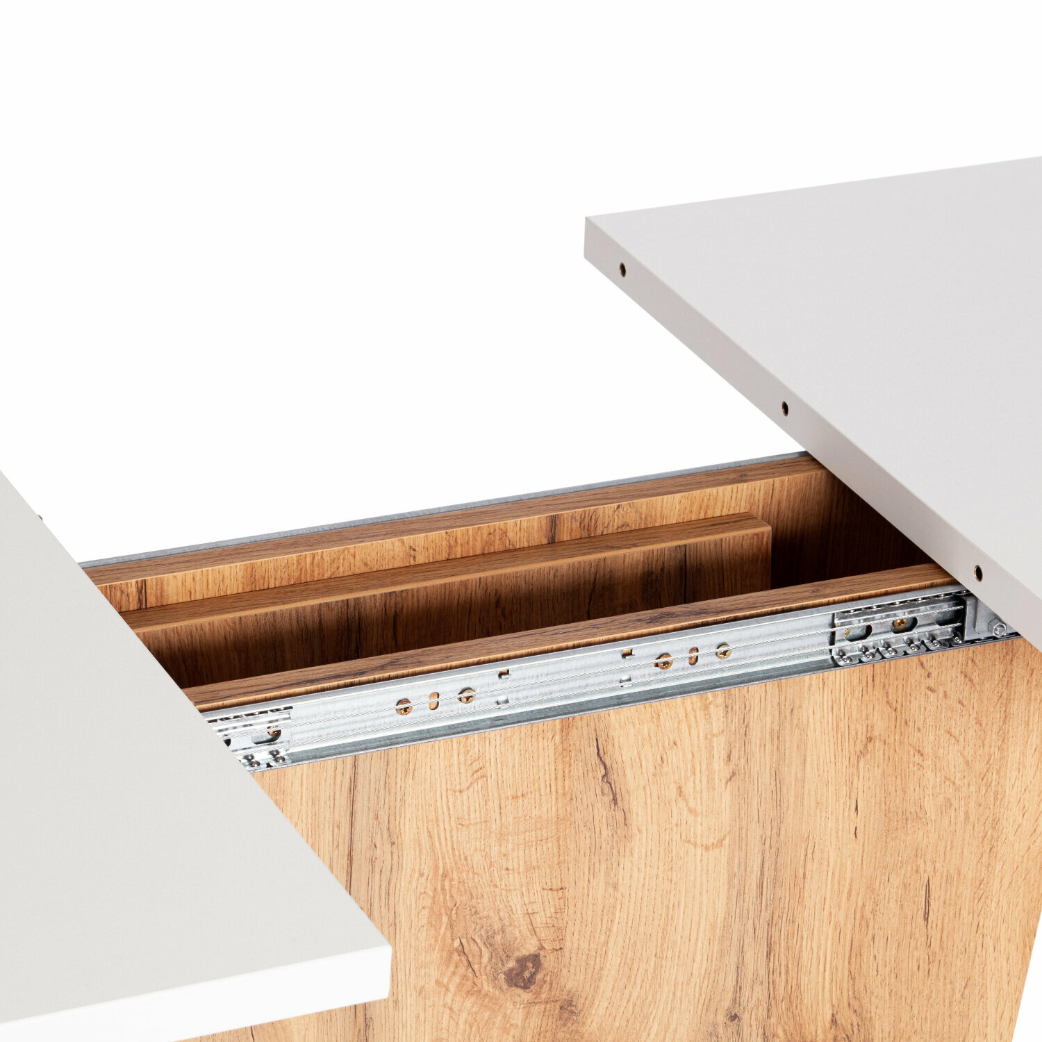 Стильный и компактный стол-трансформер GENT - это удачное сочетание простоты и элегантности. Стол хорошо впишется в обстановку гостиной, кухни или столовой благодаря отличному сочетанию белого цвета и цвета серого бетона. Его размеры позволяют комфортно разместить от четырех до шести человек. Вставка стола убирается в ножку. Края оклеены прочной пластиковой кромкой толщиной 2 мм. ЛДСП толщиной 25 мм. Механизм раздвижения - синхронного типа со стопором. Стол GENT отлично подойдёт для гостиной, для кухни или для загородного дома. Стол очень прост в сборке, инструкция по сборке прилагается.
