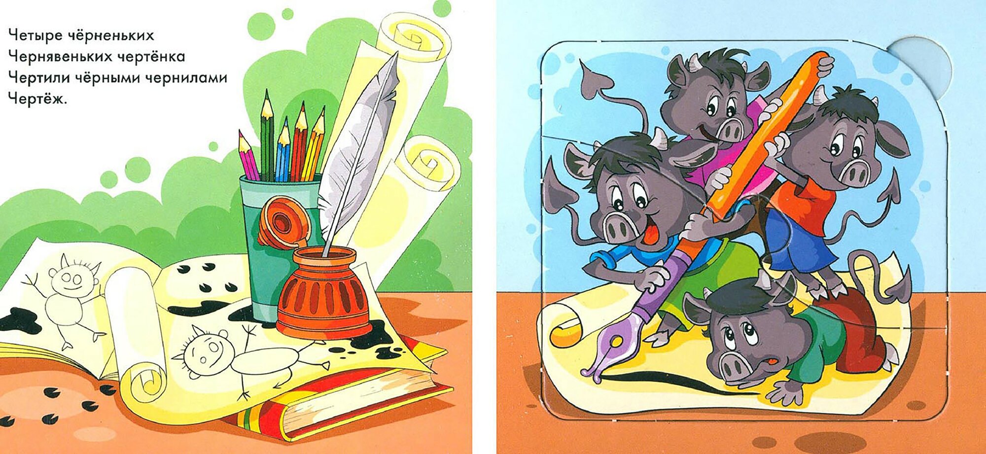 Развивающая книжка-пазл «Скороговорки» состоит из веселых скороговорок.