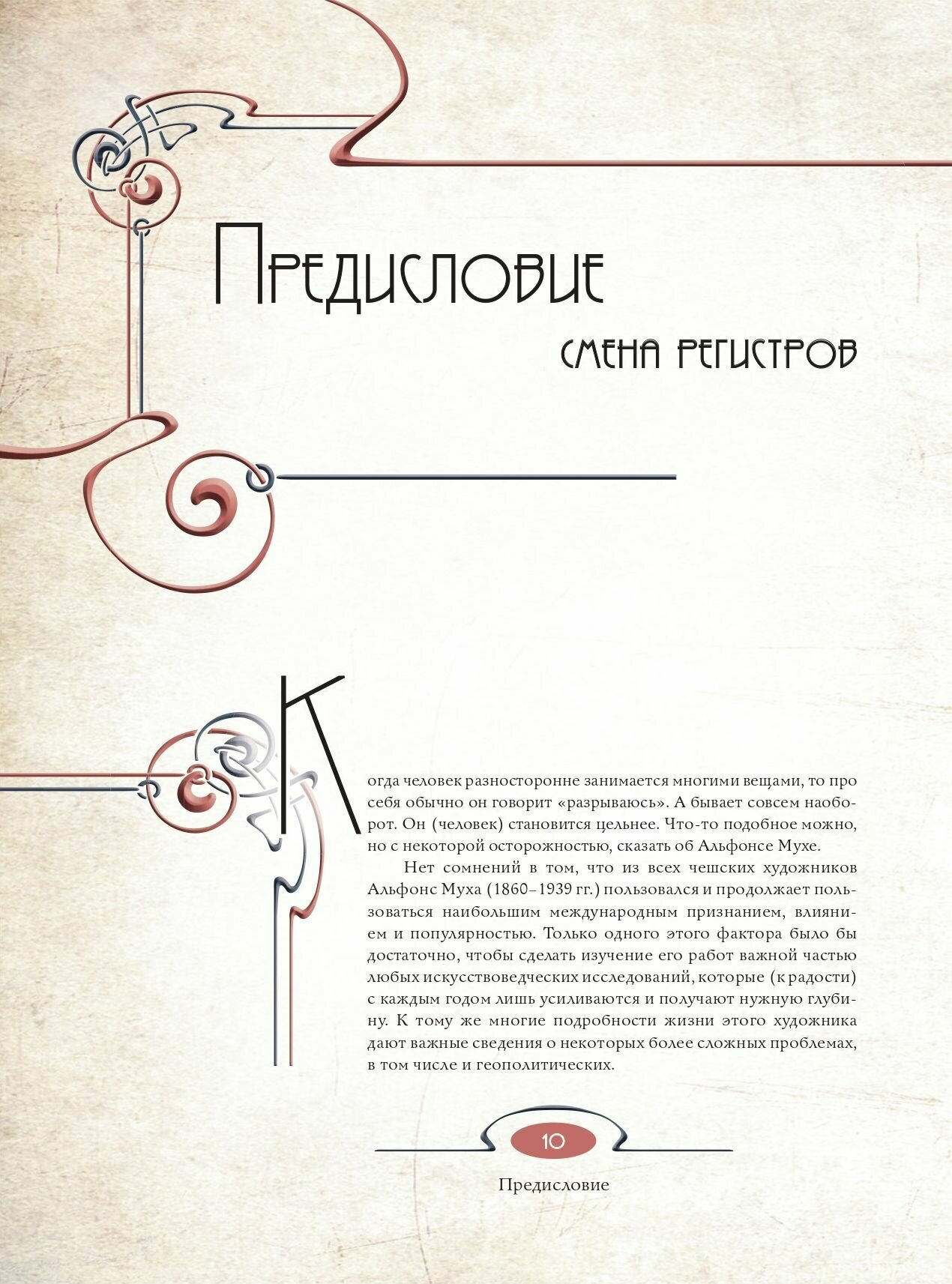 В книге понравилось всё. Страницы оформлены под старину, текст обрамляют рамочки в стиле модерн, в предисловии приведена развёрнутая хронология жизни и творчества автора. Великолепные лекции Альфонса Мухи по теории графики и композиции иллюстрируются набросками и законченными работами автора. Язык изложения не сложный для восприятия. Автор анализирует равновесие в композиции, гармонию человеческого тела, использование цвета и стилизацию работ. Обложка конечно красиво оформлена, но я не люблю когда издательства книги для рисования оформляют в белые обложки, уж больно быстро они пачкаются и приходится для них делать обложки или покрывать плёнкой, особенно если поверхность обложки шершавая и изначально не ламинирована издательством, как в данном случае. Возможно кому-то покажется, что иллюстрации не очень яркие, но и оригиналы работ автора в целом не отличаются особой яркостью.