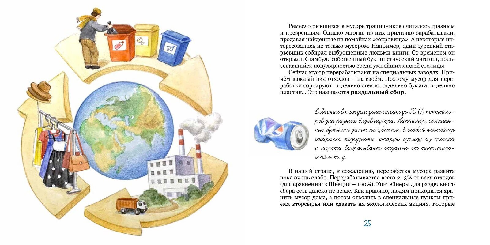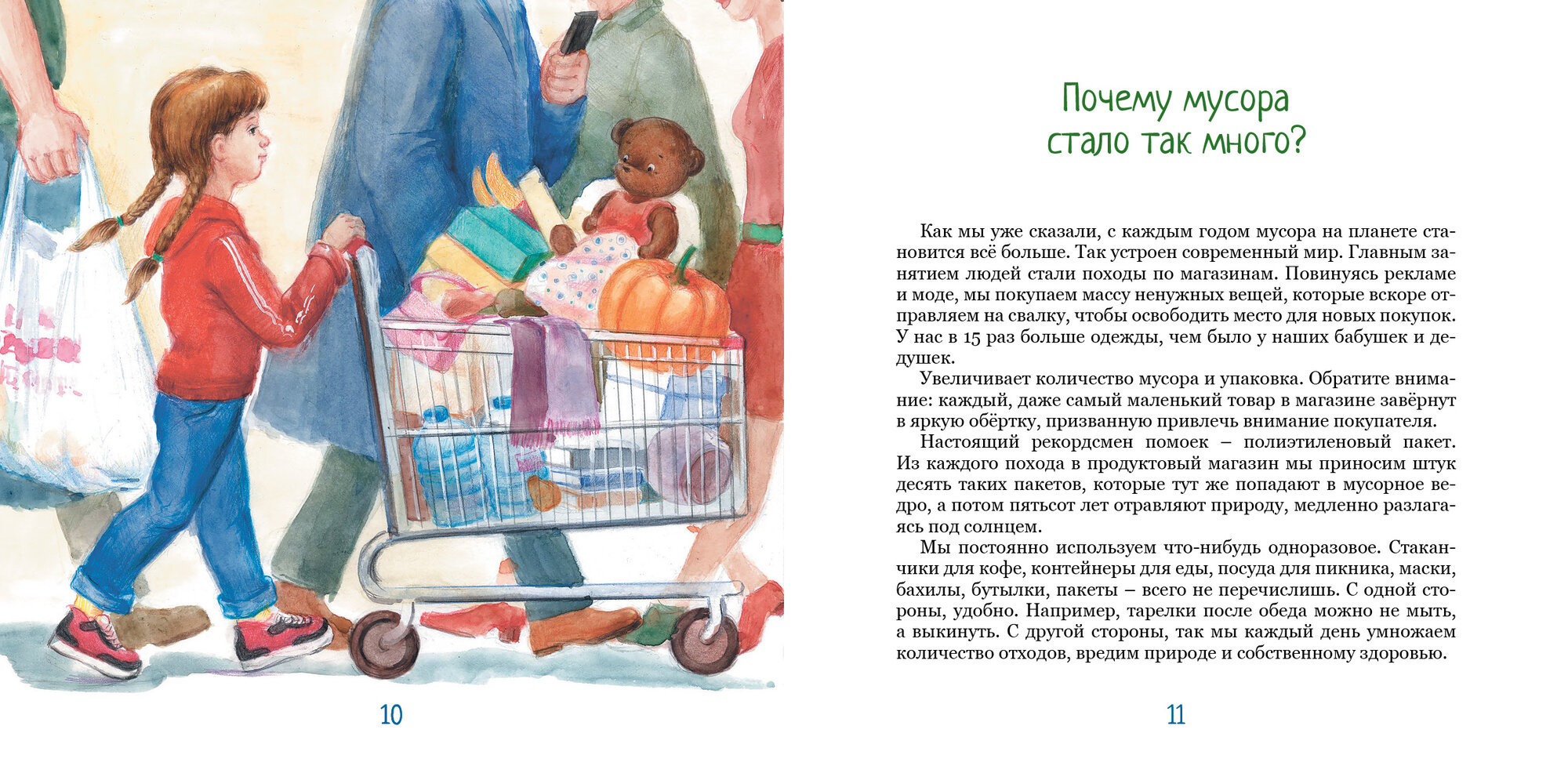 Это уникальная книга по экологии для детей младшего и среднего школьного возраста, аналогов которой нет на российском книжном рынке. В книге рассказывается об истории мусора, об опасностях, которые свалки создают для природы и человека, о переработке и вторичном использовании отходов, а также полезных экопривычках, которые помогут снизить количество производимого нами мусора.