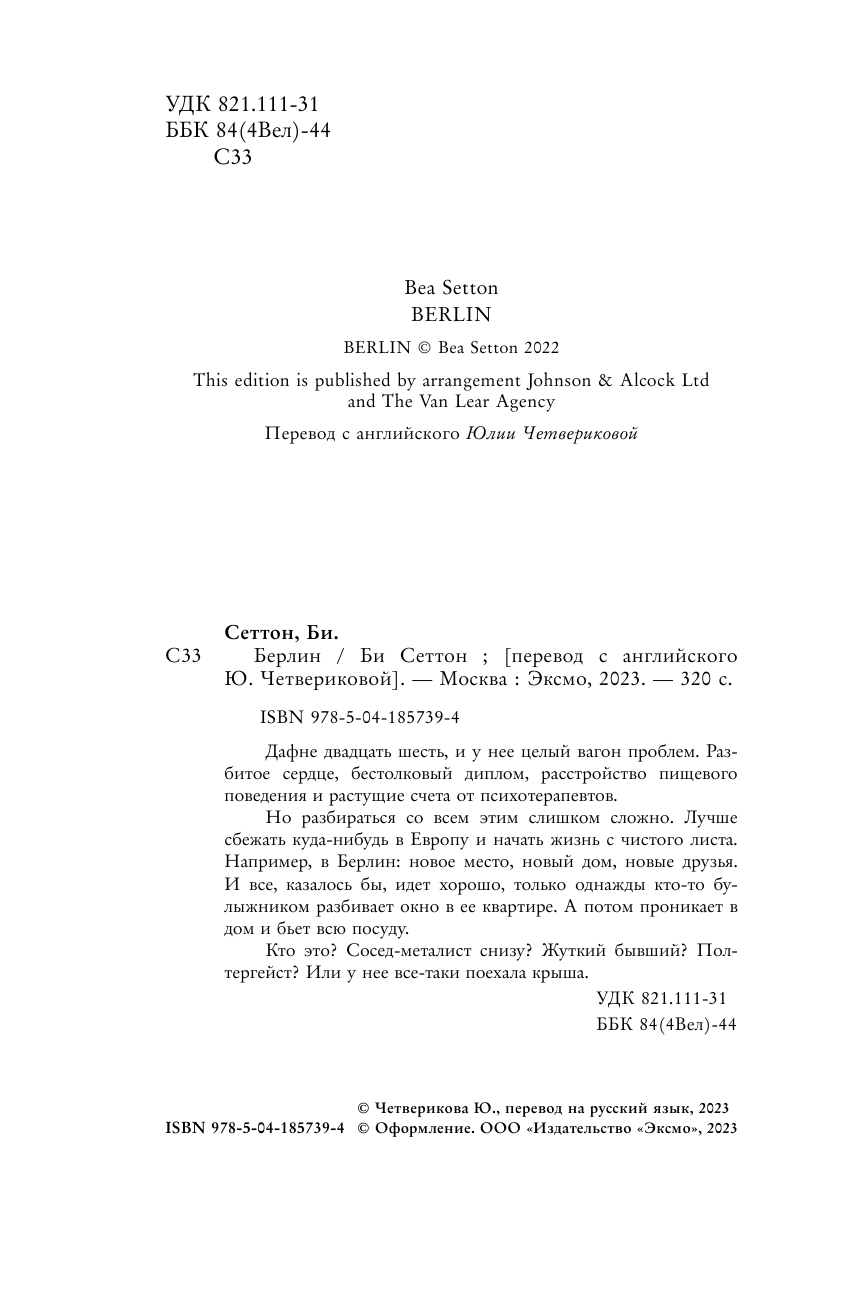 Книга: Берлин (Би Сеттон); Эксмо, Inspiria, Редакция 1, 2023