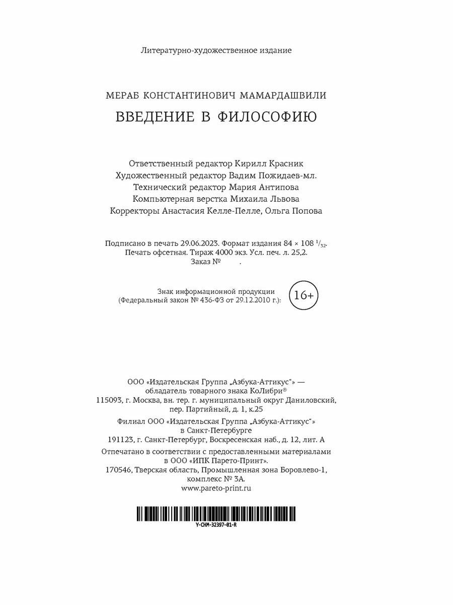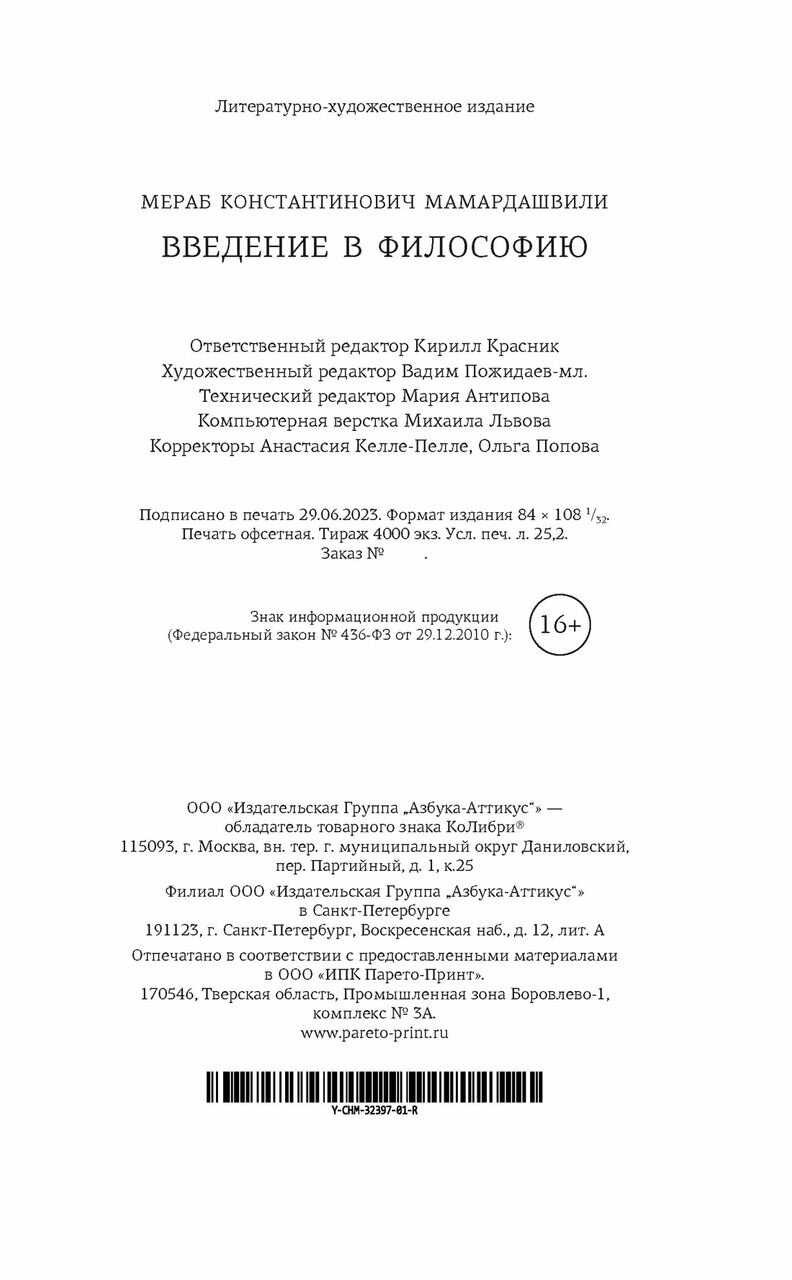 Книга: Введение в философию (Мамардашвили Мераб Константинович); КоЛибри, 2023