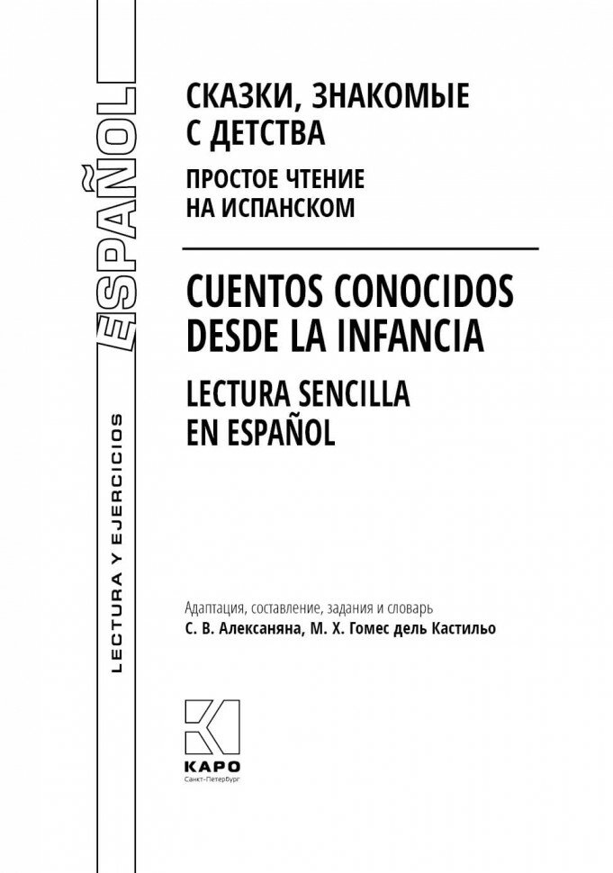 Сервис сравнения цен СкидкаГИД предлагает сравнить цены на товар «Книга: Сказки знакомые с детства. Простое чтение на испанском (Алексанян Сурен Варужанович); Каро, 2023»