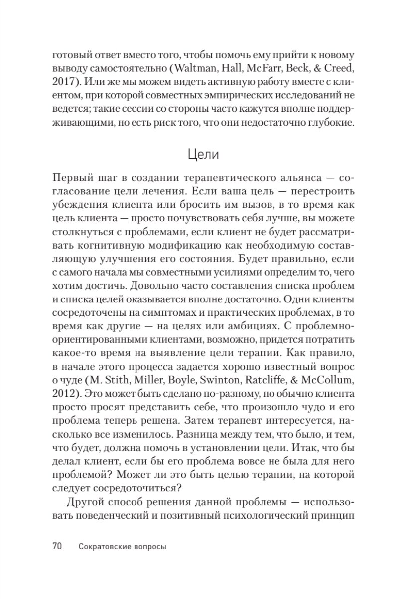 Эта книга содержит в себе максимально полную информацию об использования сократовcких стратегий в психотерапии и консультировании. Вы найдете в ней множество примеров из практики, приемов, рекомендаций, техник и методов по работе с убеждениями. Кроме того, книга описывает, как работают сократовские стратегии применительно к разным категориям пациентов, например, к людям с пограничным расстройством личности, проходящим диалектическую поведенческую терапию. Опираясь на методы когнитивно-поведенческой терапии и теоретические знания, авторы создали очень гибкую структуру сократовского диалога. В книге также содержится подробное руководство по устранению проблем, возникающих в ходе сократовского процесса. Дополнительные главы содержат в себе подробные инструкции, касающиеся интервенций, направленных на изменение базовых убеждений и схем.