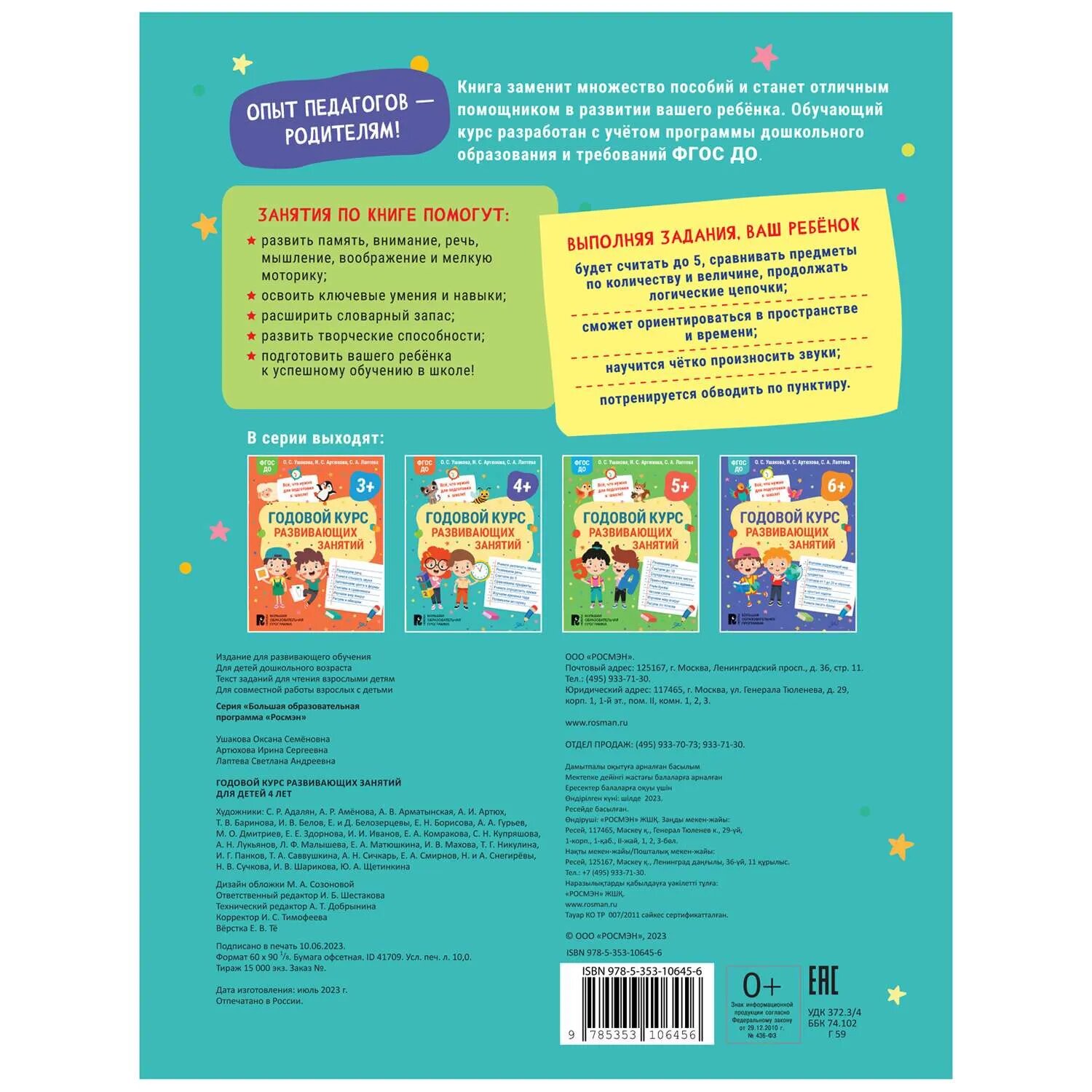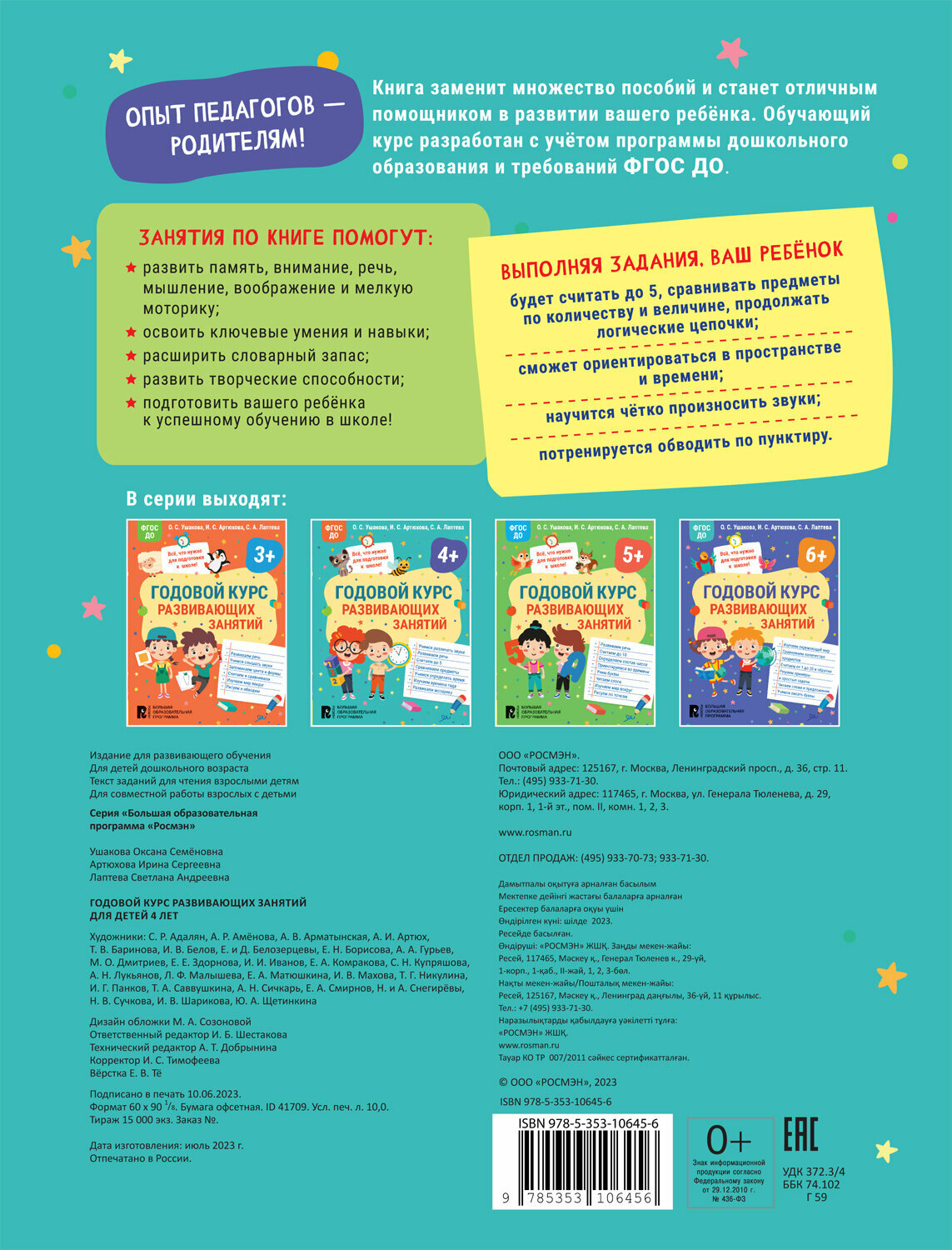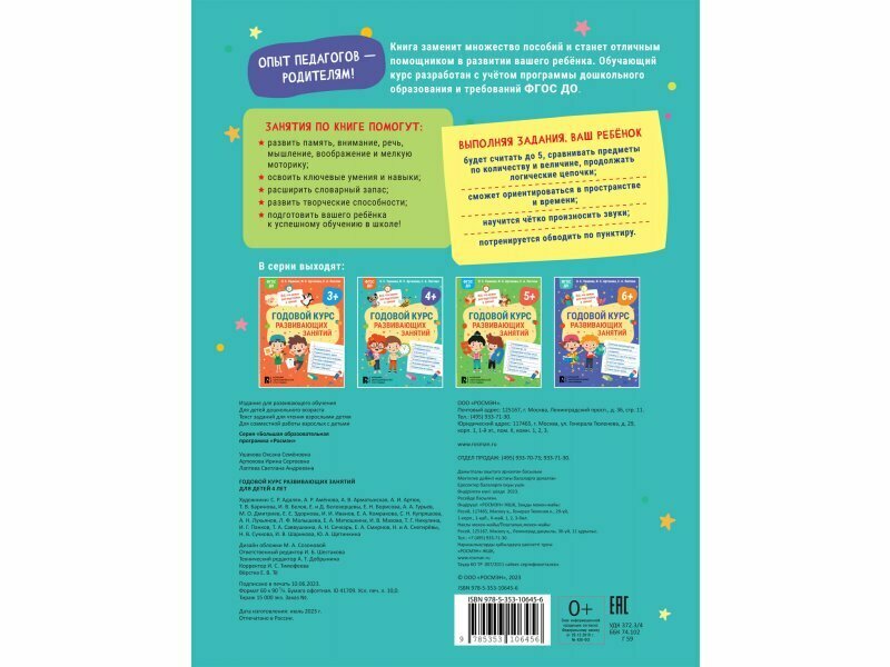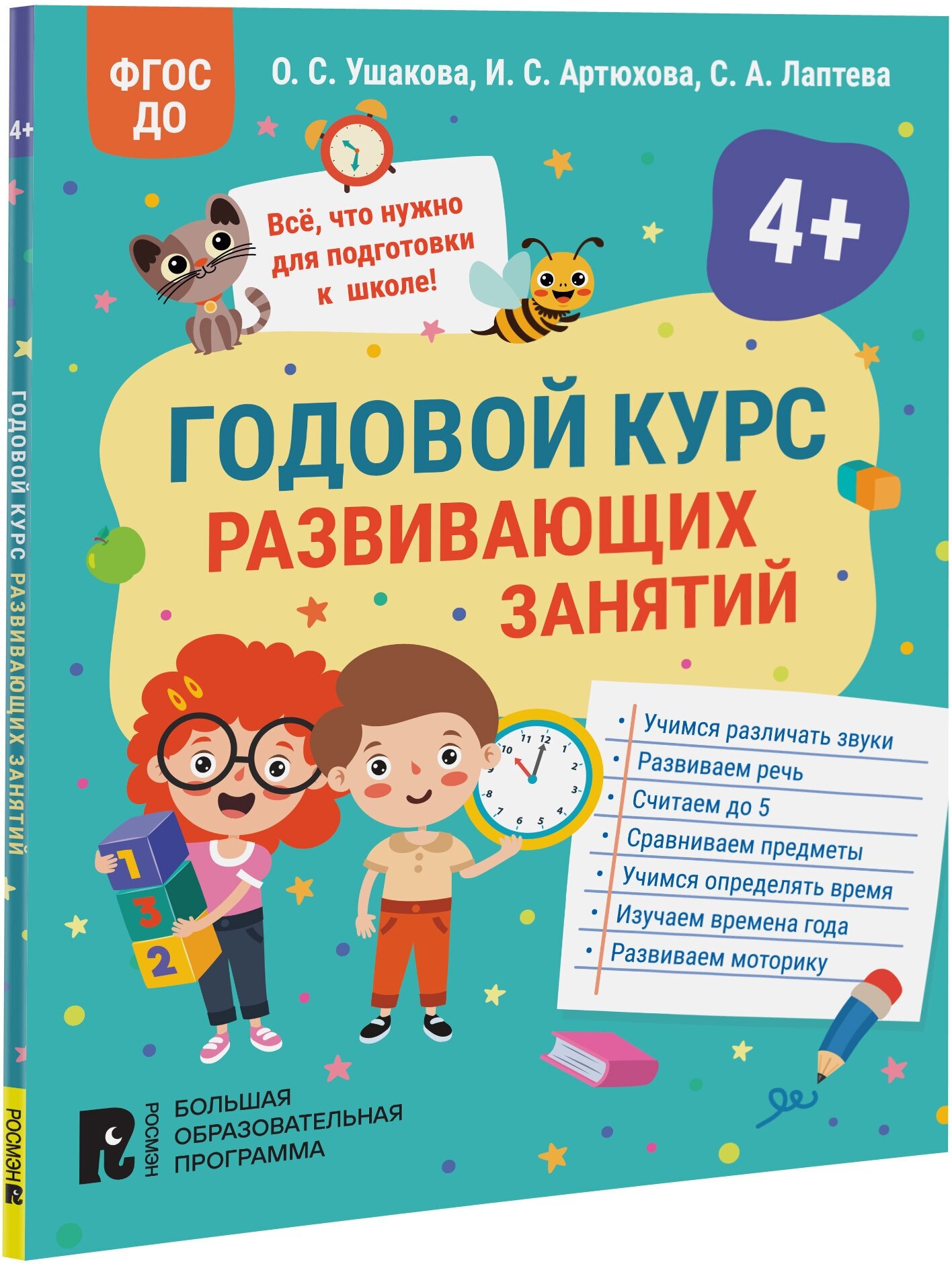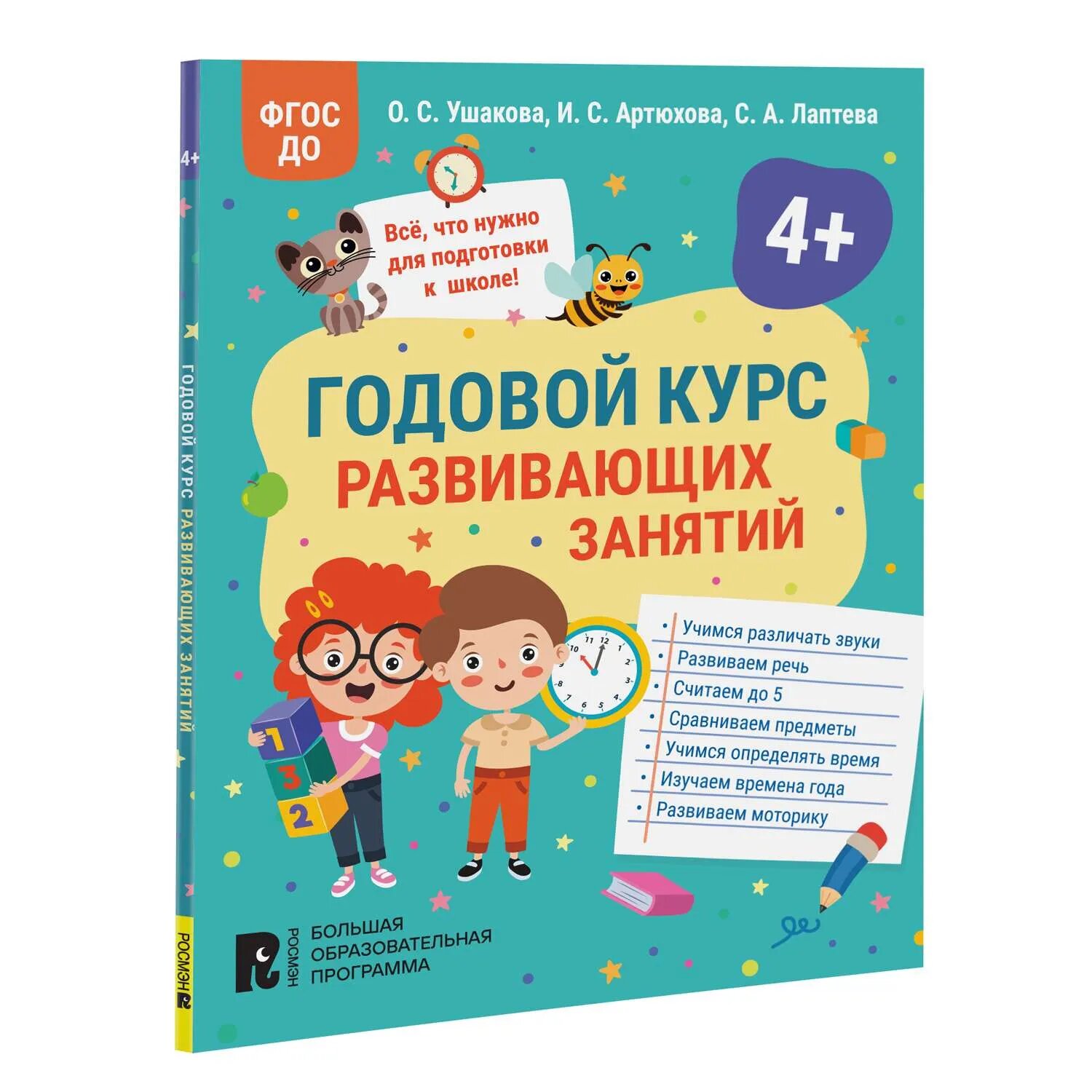 Годовой курс развивающих занятий для детей 4 лет (Артюхова Ирина Сергеевна, Лаптева Светлана Андреевна, Ушакова Оксана Семеновна); РОСМЭН, 2023
