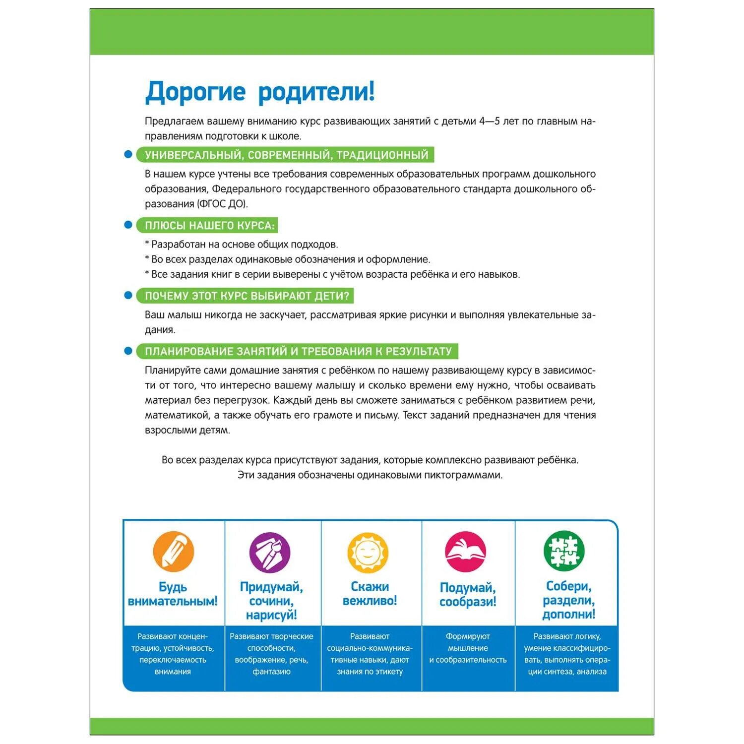 Книга заменит множество пособий и станет отличным помощником в разв итии вашего ребёнка. Обучающий курс разработан с учё том программы дошкольного образования и требований ФГОС ДО.